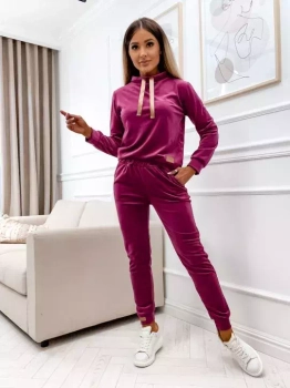 Dam 2-Delad Velour Träningsoverall Fuchsia Bolf 637