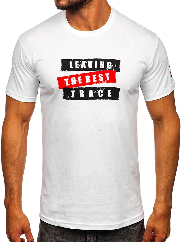 Herr Bomulls T-shirt med tryck Vit Bolf 14701