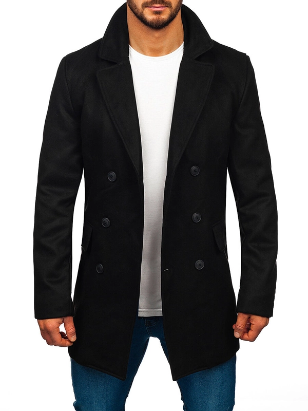 Herr Dubbelknäppt vinterkappa Svart Bolf M3142A