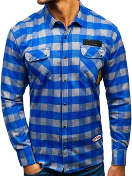 Herr Långärmad Flanellskjorta Blå-Grå Bolf 2503