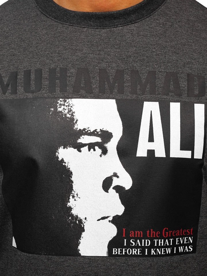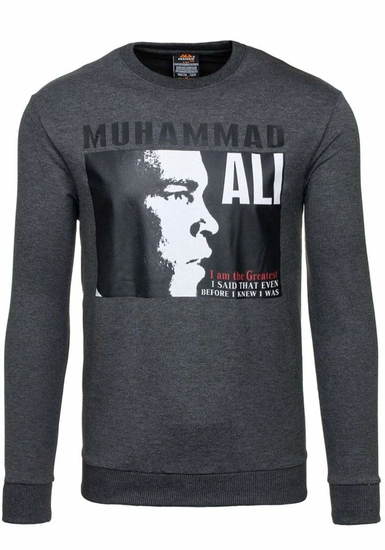 Bekväm antracit herr sweatshirt från Bolf kollektionen med ett Muhammad Ali-tema. Den presenterade modellen är ett utmärkt val för ett träningspass tillsammans med ett par joggers eller shorts. Bär den tillsammans med ett par jeans eller baggybyxor.