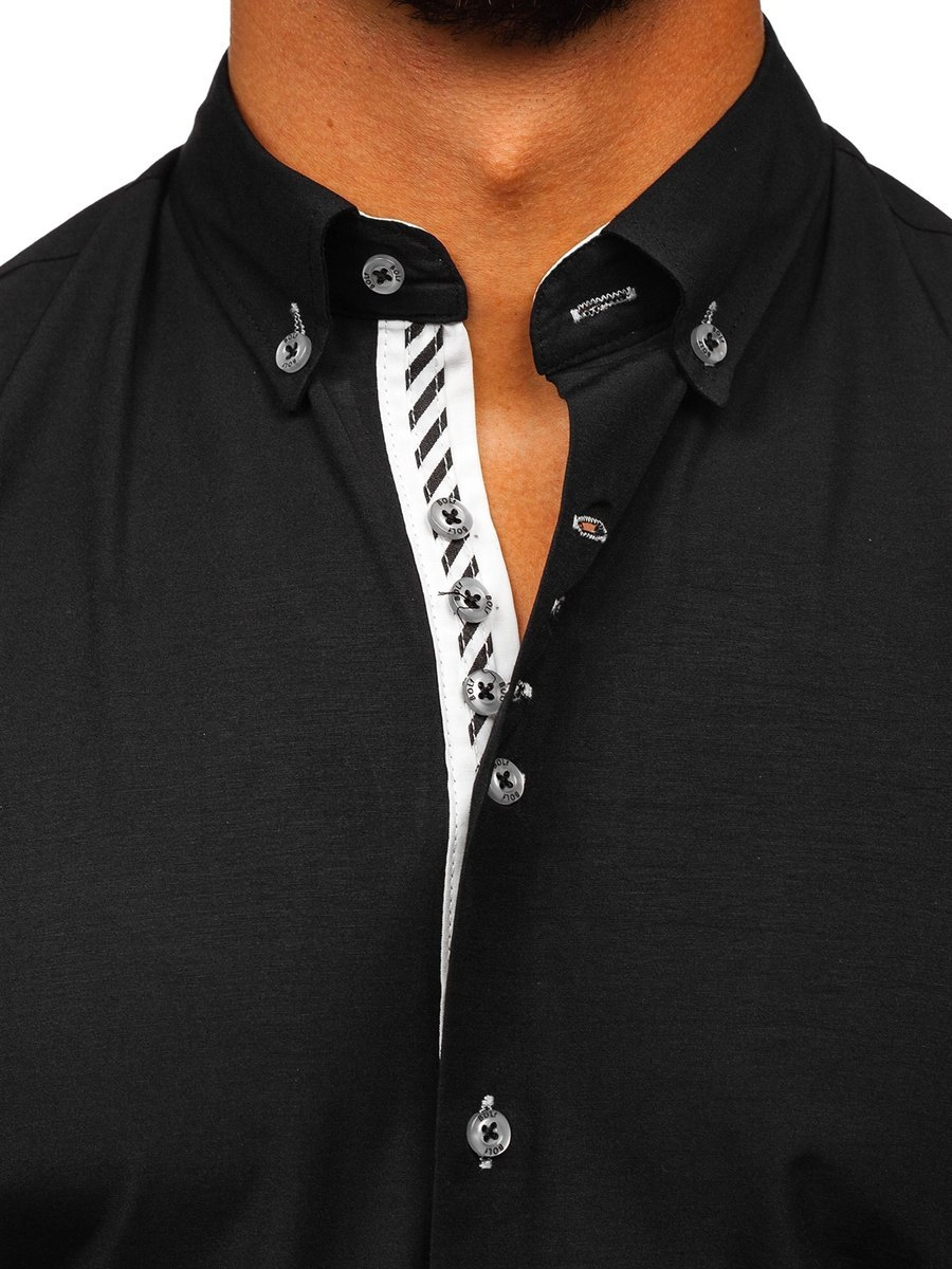Elegant svart herrskjorta från Bolfs kollektion. Den är väldigt bekväm, lättvikt och skön passform. Modellen är Slim fit och passar perfekt med ett par jeans. Passar perfekt tillsammans med ett par chinos och en varm cardigan.