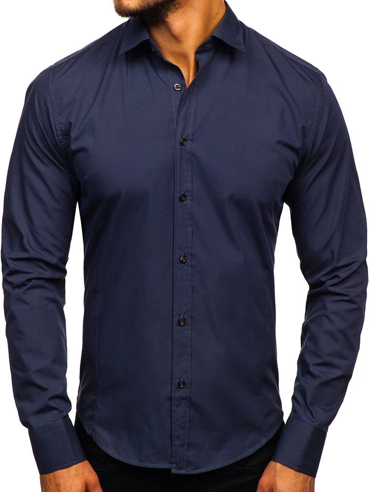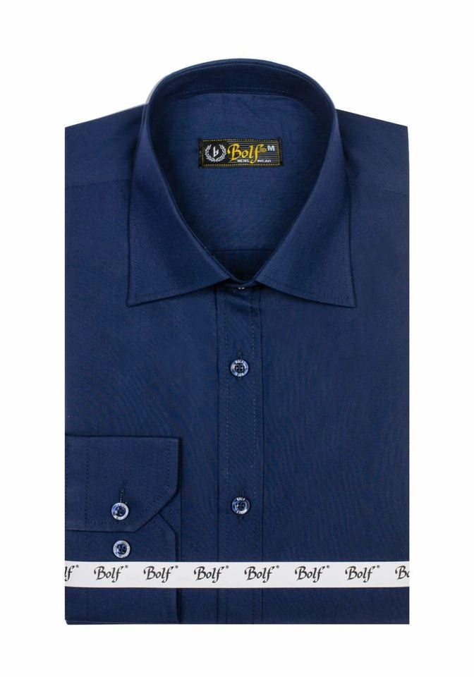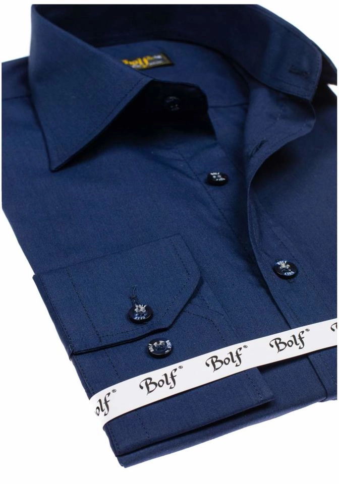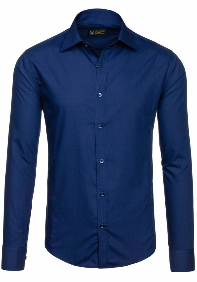 Elegant marinblå långärmad herrskjorta 1703 från Bolfs Kollektion. Den här modellen finns i flera olika färger. Enfärgade herrskjortor rekommenderas till de som gillar minimalism och klassisk elegans i modet. Den är bekväm och har bra passform. Defenitivt ett måste i den medvetna affärsmannens garderob. Designen är rak och passar till olika stilar. Skjortan är av slim fit-modell, har knappar och är praktiskt rundad nertill. Ärmarns avslutas med en bred, justerbar manschett som stängs med en knapp. Den har en klassisk krage med korta slag. Den kommer helt säkert uppfylla alla dina förväntningar oavsett vilken färg du väljer. Välj bland många fina färger. Skjortor passar i många olika formella och halvformella sammanhang. Affärsmöte? Date? Fest? För vart och ett av dessa tillfällen passar en enfärgad skjorta från Bolf. Den här modellen passar bra med jeans, joggers, en bomberjacka eller en klassisk skinnjacka. Använd gärna med chinos, en kavaj eller en kostym. Lägg till en klassisk fluga eller en slips. Skjortan Bolf 1703 är märkets flaggskepps-produkt. Den är också en av Bolfs försäljningssuccéer, i åratal har den varit bland de 10 bästa shoppingvalen för våra kunder som är villiga att komma tillbaka för nya färgversioner av produkten. Exceptionellt bra pris och bra utförande är andra fördelar med skjortan.