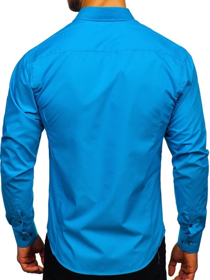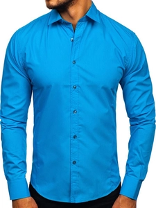 Elegant turkos långärmad herrskjorta 1703 från Bolfs Kollektion. Den här modellen finns i flera olika färger. Enfärgade herrskjortor rekommenderas till de som gillar minimalism och klassisk elegans i modet. Den är bekväm och har bra passform. Defenitivt ett måste i den medvetna affärsmannens garderob. Designen är rak och passar till olika stilar. Skjortan är av slim fit-modell, har knappar och är praktiskt rundad nertill. Ärmarns avslutas med en bred, justerbar manschett som stängs med en knapp. Den har en klassisk krage med korta slag. Den kommer helt säkert uppfylla alla dina förväntningar oavsett vilken färg du väljer. Välj bland många fina färger. Skjortor passar i många olika formella och halvformella sammanhang. Affärsmöte? Date? Fest? För vart och ett av dessa tillfällen passar en enfärgad skjorta från Bolf. Den här modellen passar bra med jeans, joggers, en bomberjacka eller en klassisk skinnjacka. Använd gärna med chinos, en kavaj eller en kostym. Lägg till en klassisk fluga eller en slips. Skjortan Bolf 1703 är märkets flaggskepps-produkt. Den är också en av Bolfs försäljningssuccéer, i åratal har den varit bland de 10 bästa shoppingvalen för våra kunder som är villiga att komma tillbaka för nya färgversioner av produkten. Exceptionellt bra pris och bra utförande är andra fördelar med skjortan.