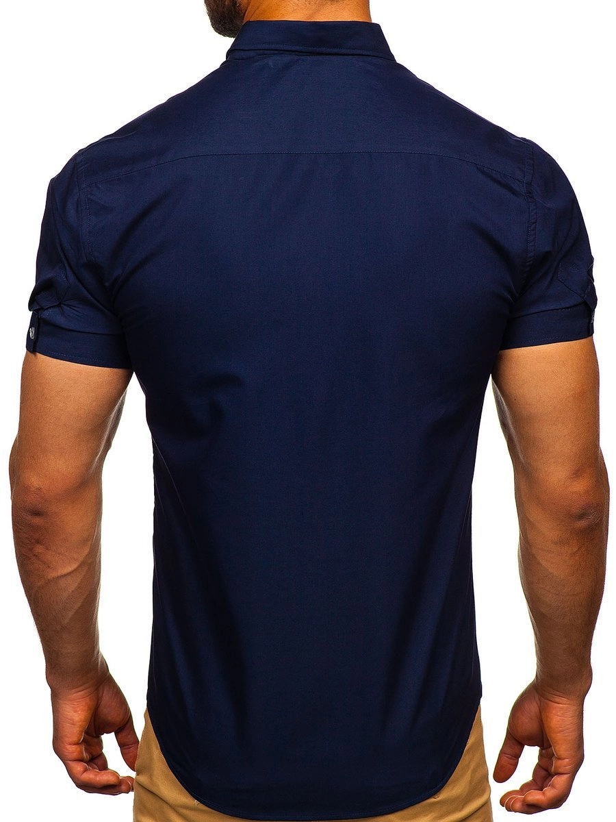 Marinblå kortärmad skjorta från Bolf kollektionen. Det perfekta valet för din sommar outfit. Passar absolut bäst tillsammans med ett par jeans och ljusa shorts. Riktigt skön och bekväm med bra passform. Testa den du med!