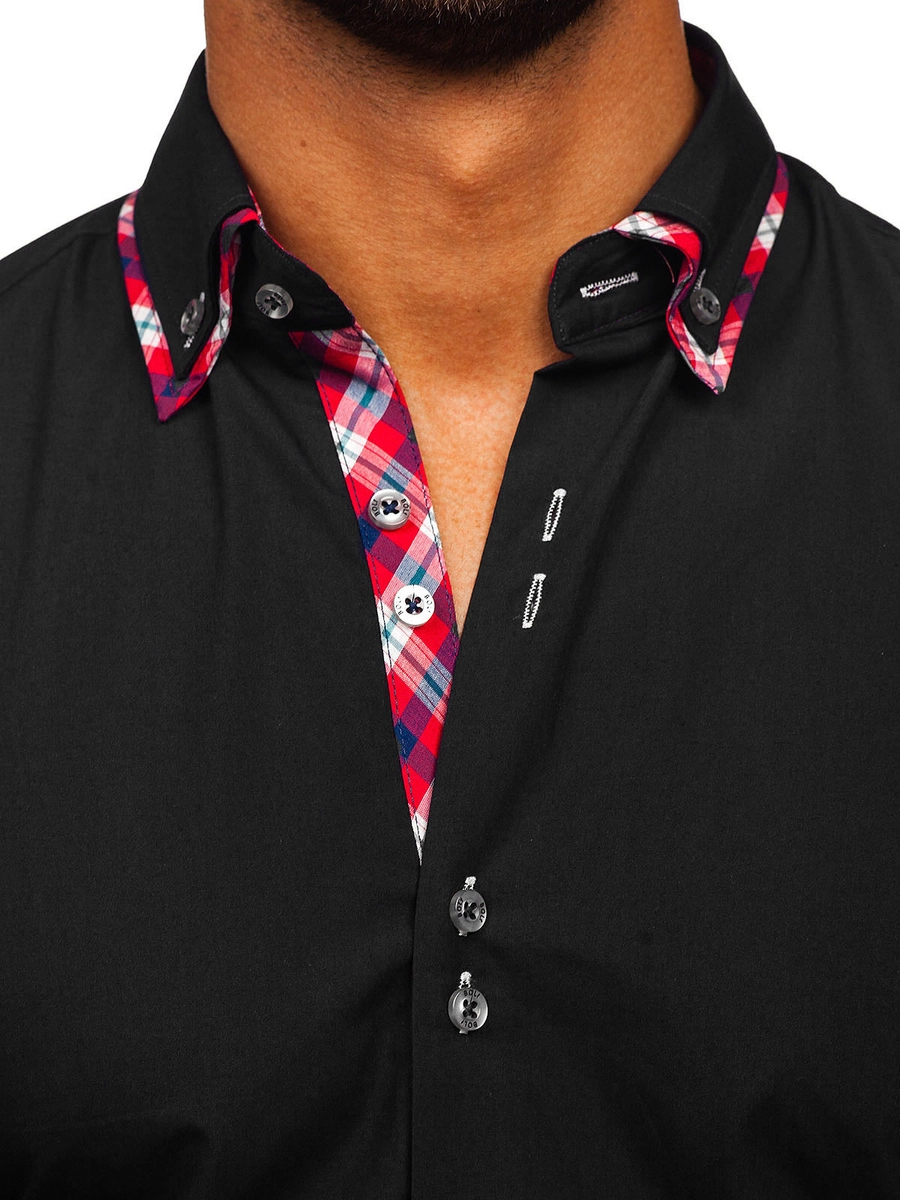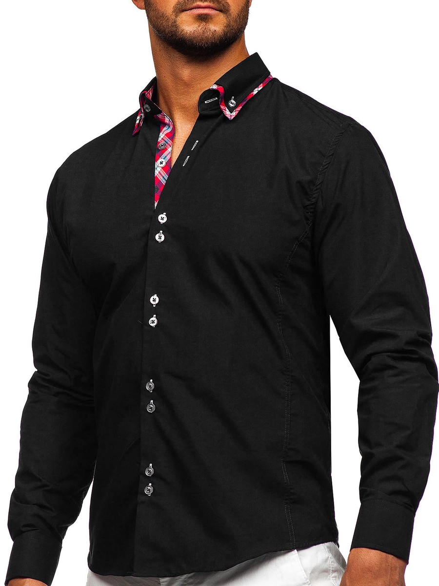 Klassisk svart långärmad skjorta från Bolf-kollektionen. Ser riktigt bra ut under en kavaj. Passar till formella stilar. Den här modellen är av slim fit modell och väldigt bekväm. De rutiga inslagen är väldigt iögonfallande.