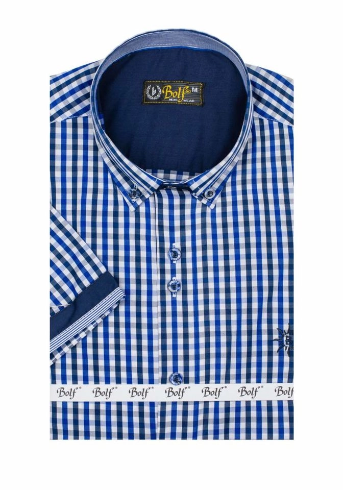 Feedback från kunder Herr Kortärmad Rutig Skjorta Royal Blå Bolf 4510