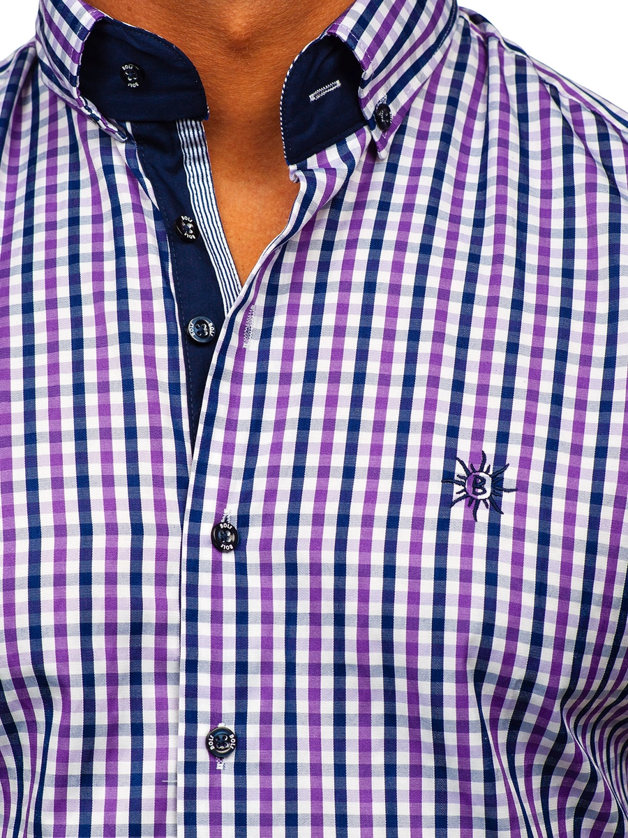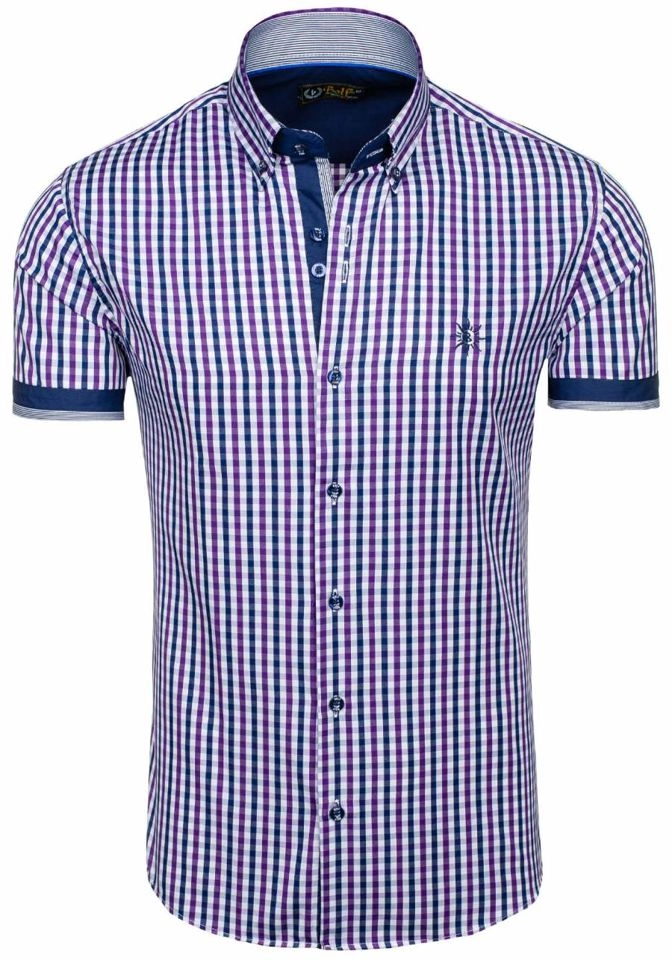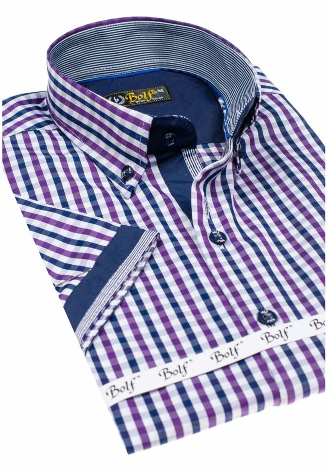 Är check din favoritdesign? Gillar du att sticka ut men modeexperiment är för mycket? Fantastisk violett kortärmad skjorta från Bolf-kollektionen. Den är perfekt till sommarstyling. Den presenterade modellen har slim fit och passar till linnebyxor, shorts eller jeans.