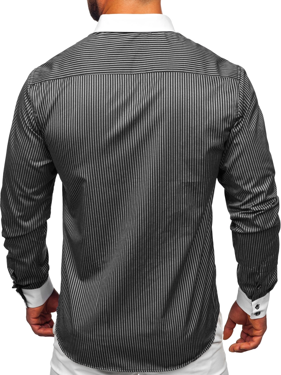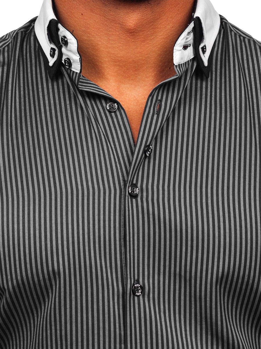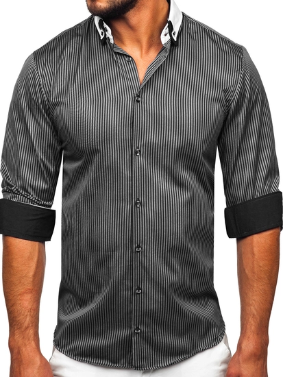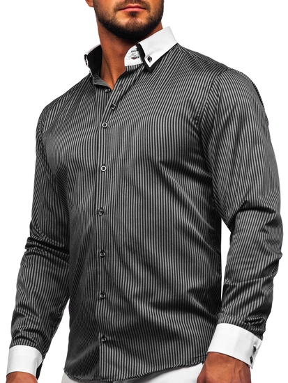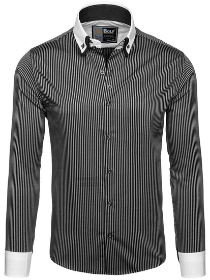 Feedback från kunder Herr Elegant Randig Långärmad Skjorta Svart Bolf 0909