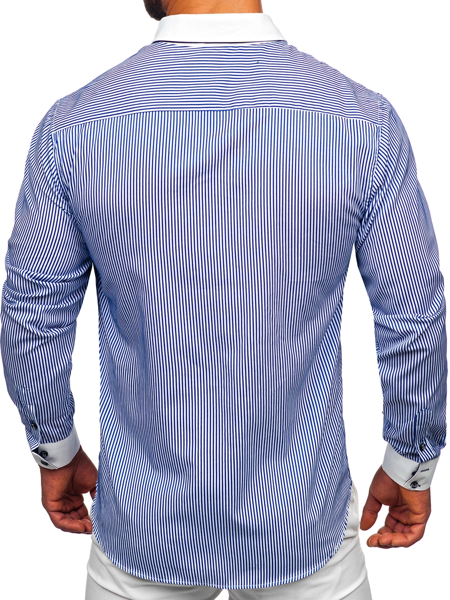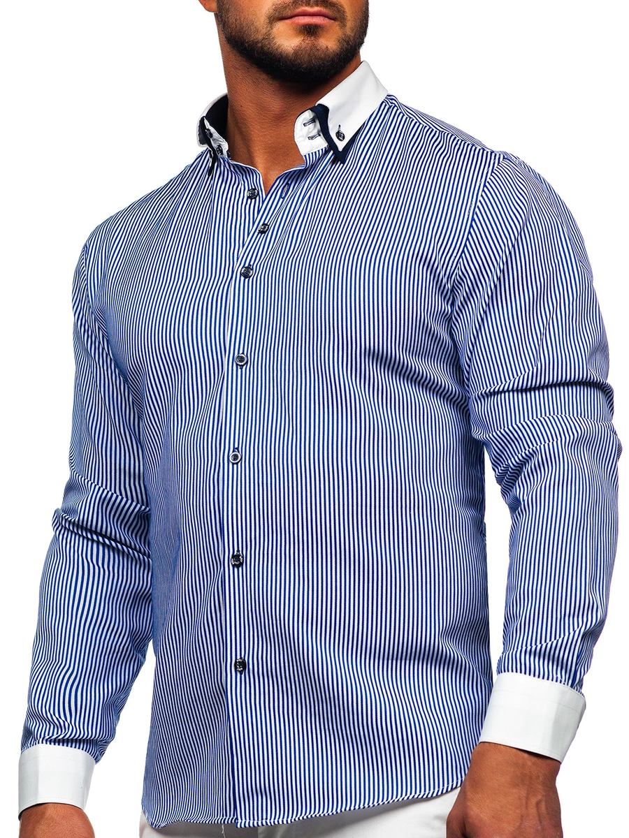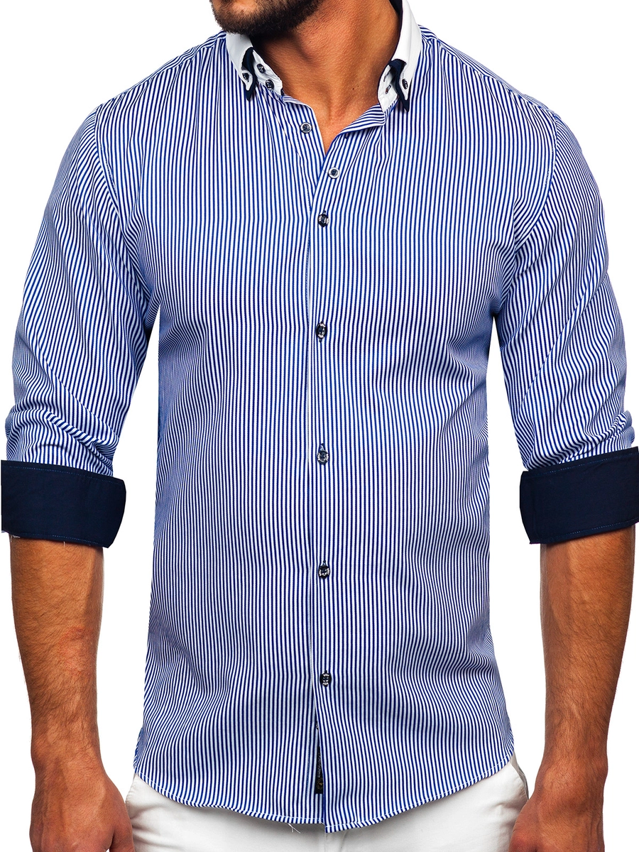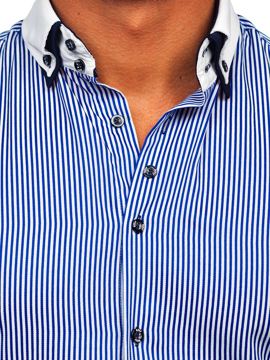 Feedback från kunder Herr Elegant Randig Långärmad Skjorta Blå Bolf 0909