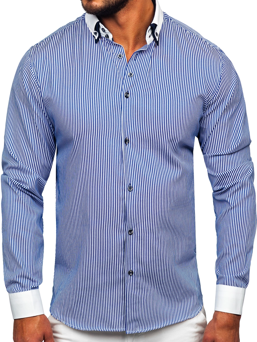 Winchester-skjortor är förmodligen den mest manliga typen av skjorta. De är en perfekt bas för att bygga en bild av framgång. Blå herrskjortor från Bolf är imponerande och moderna. Blå ränder förstärker din avslappnade look, eftersom den dubbla button-down-kragen ger komfort.