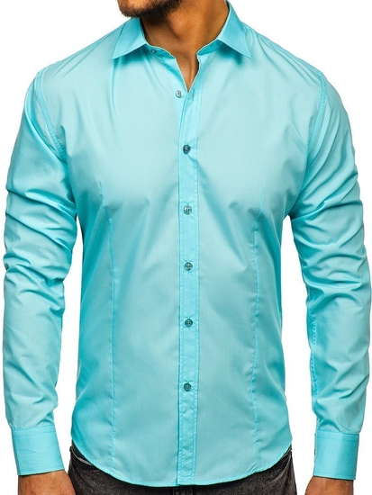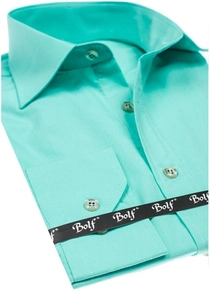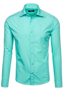 Elegant ljusgrön långärmad herrskjorta 1703 från Bolfs Kollektion. Den här modellen finns i flera olika färger. Enfärgade herrskjortor rekommenderas till de som gillar minimalism och klassisk elegans i modet. Den är bekväm och har bra passform. Defenitivt ett måste i den medvetna affärsmannens garderob. Designen är rak och passar till olika stilar. Skjortan är av slim fit-modell, har knappar och är praktiskt rundad nertill. Ärmarns avslutas med en bred, justerbar manschett som stängs med en knapp. Den har en klassisk krage med korta slag.