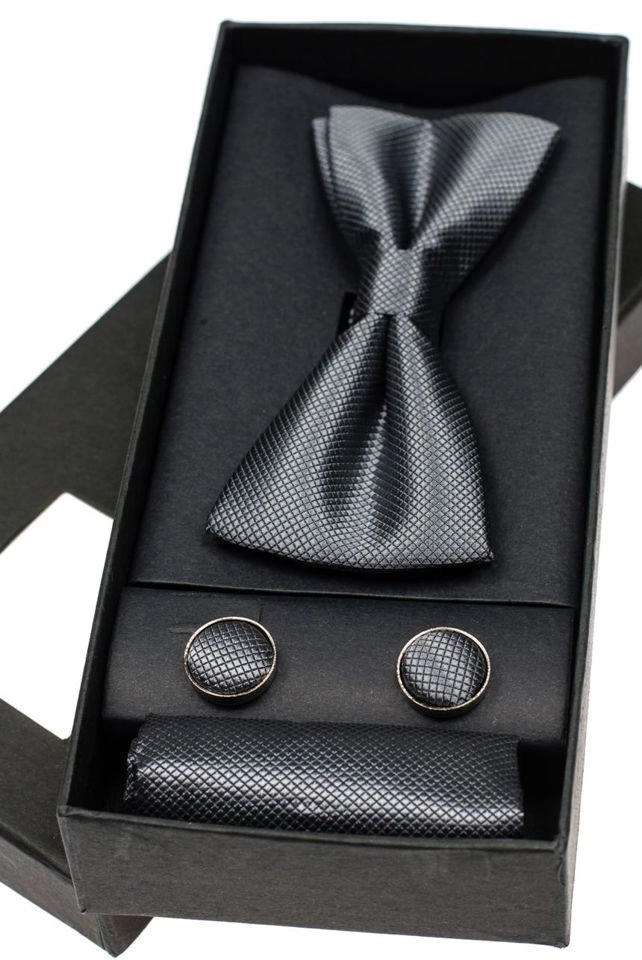 Feedback från kunder Herr Set Fluga, Manschettknappar, Näsduk Mörkgrå Bolf MSP01