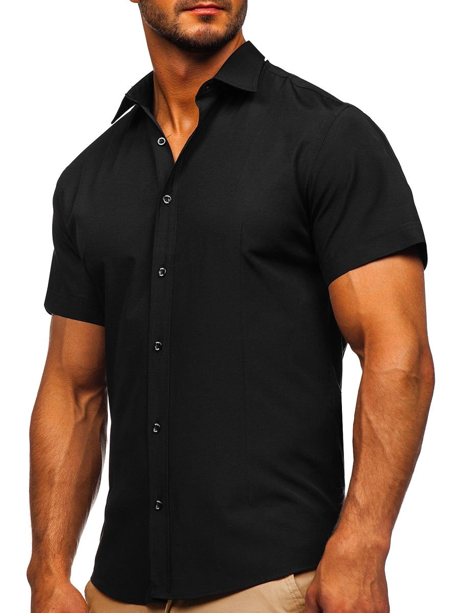 Feedback från kunder Herr Elegant Kortärmad Skjorta Svart Bolf 7501