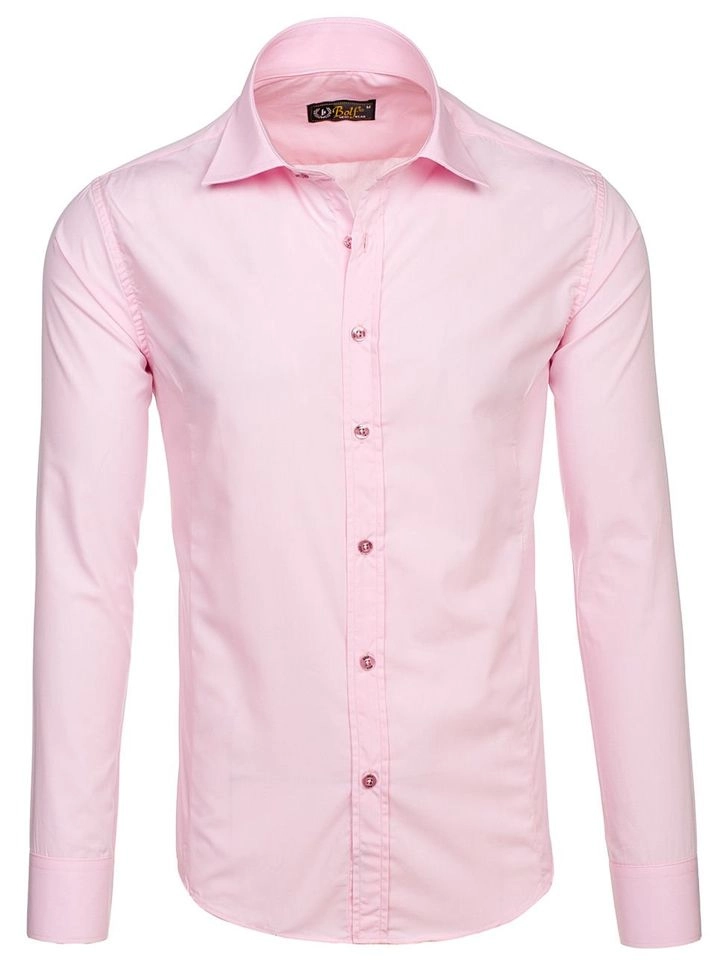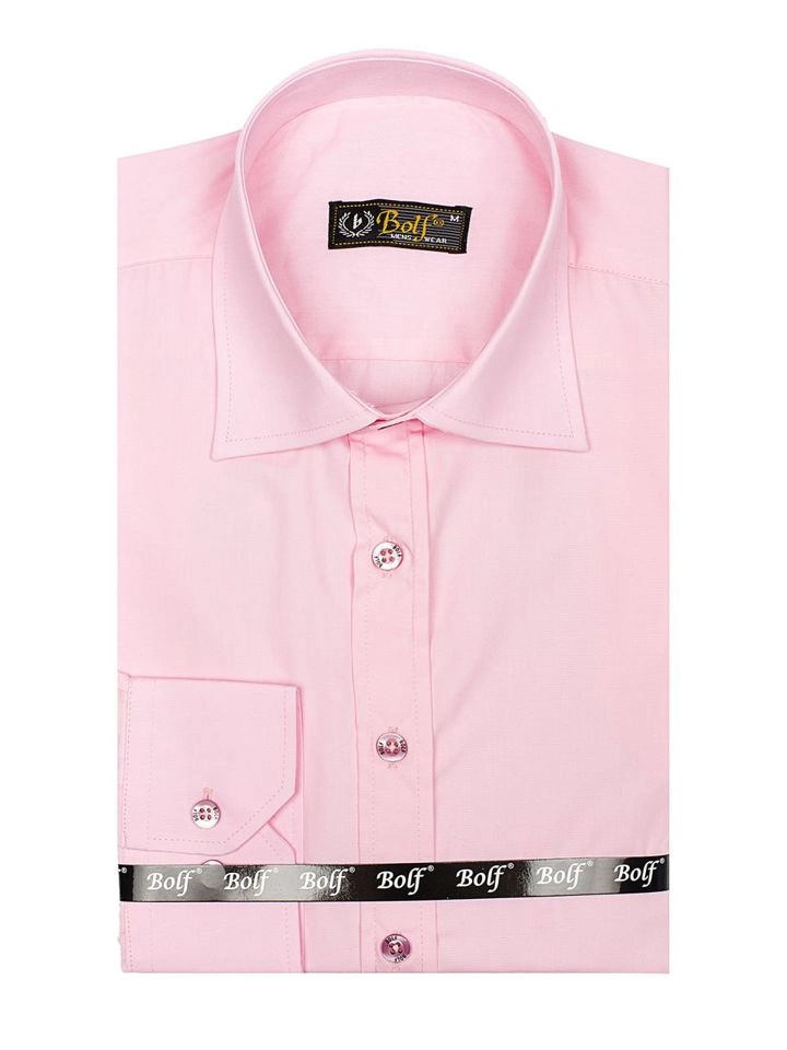 Elegant rosa långärmad herrskjorta 1703 från Bolfs Kollektion. Den här modellen finns i flera olika färger. Enfärgade herrskjortor rekommenderas till de som gillar minimalism och klassisk elegans i modet. Den är bekväm och har bra passform. Defenitivt ett måste i den medvetna affärsmannens garderob. Designen är rak och passar till olika stilar. Skjortan är av slim fit-modell, har knappar och är praktiskt rundad nertill. Ärmarns avslutas med en bred, justerbar manschett som stängs med en knapp. Den har en klassisk krage med korta slag. Den kommer helt säkert uppfylla alla dina förväntningar oavsett vilken färg du väljer. Välj bland många fina färger. Skjortor passar i många olika formella och halvformella sammanhang. Affärsmöte? Date? Fest? För vart och ett av dessa tillfällen passar en enfärgad skjorta från Bolf. Den här modellen passar bra med jeans, joggers, en bomberjacka eller en klassisk skinnjacka. Använd gärna med chinos, en kavaj eller en kostym. Lägg till en klassisk fluga eller en slips. Skjortan Bolf 1703 är märkets flaggskepps-produkt. Den är också en av Bolfs försäljningssuccéer, i åratal har den varit bland de 10 bästa shoppingvalen för våra kunder som är villiga att komma tillbaka för nya färgversioner av produkten. Exceptionellt bra pris och bra utförande är andra fördelar med skjortan.