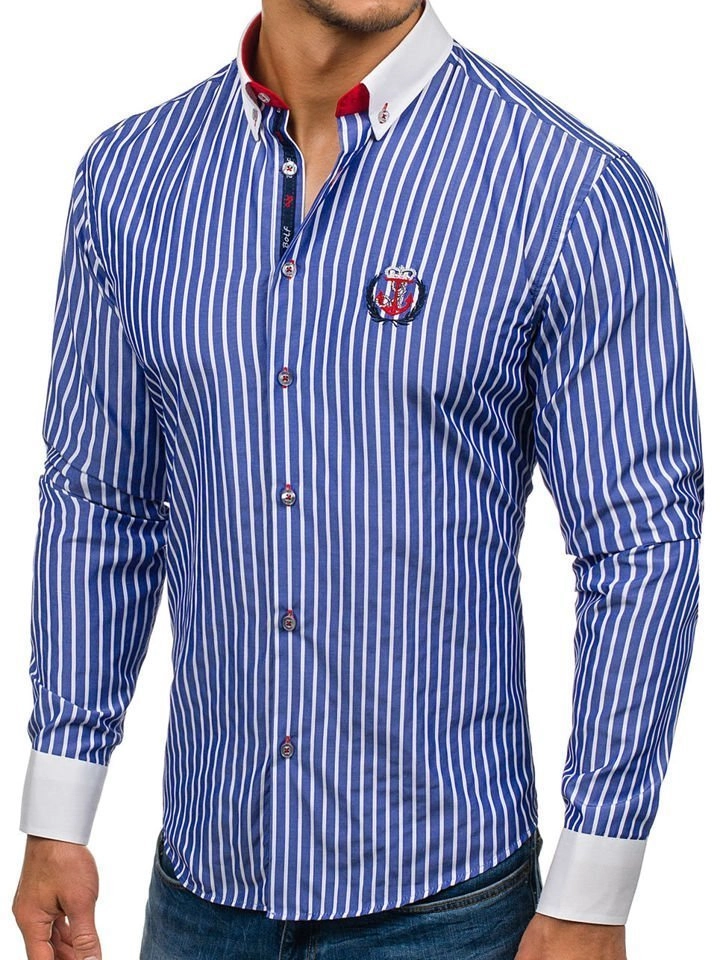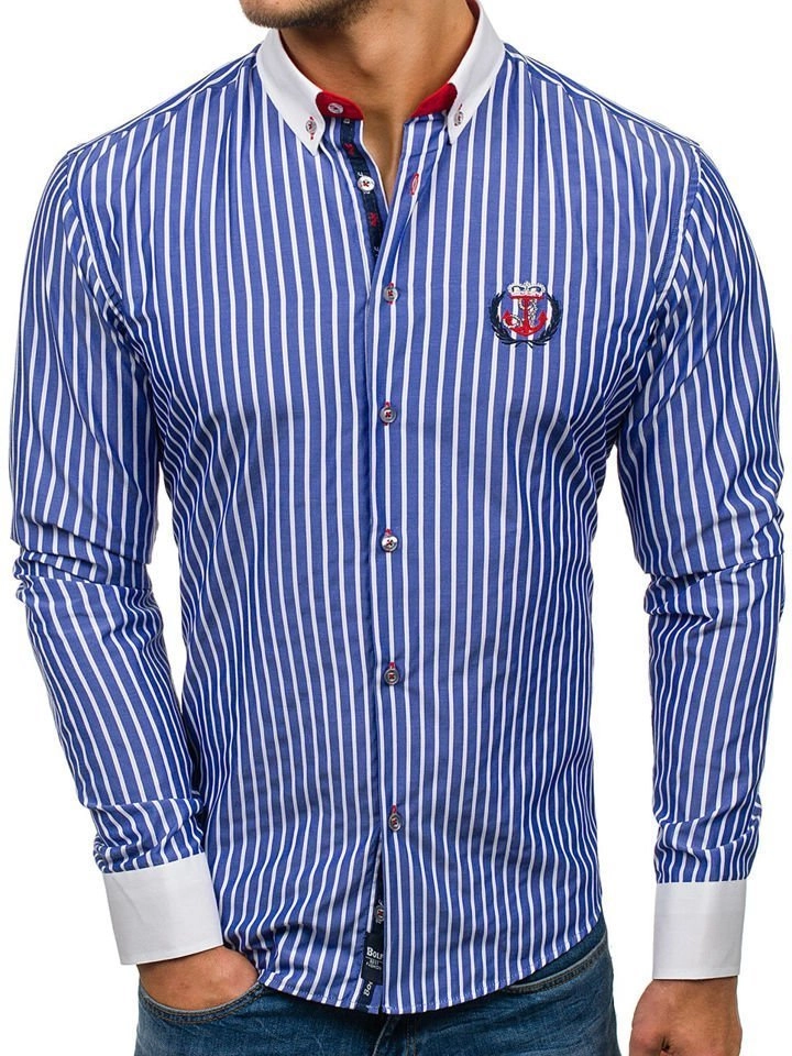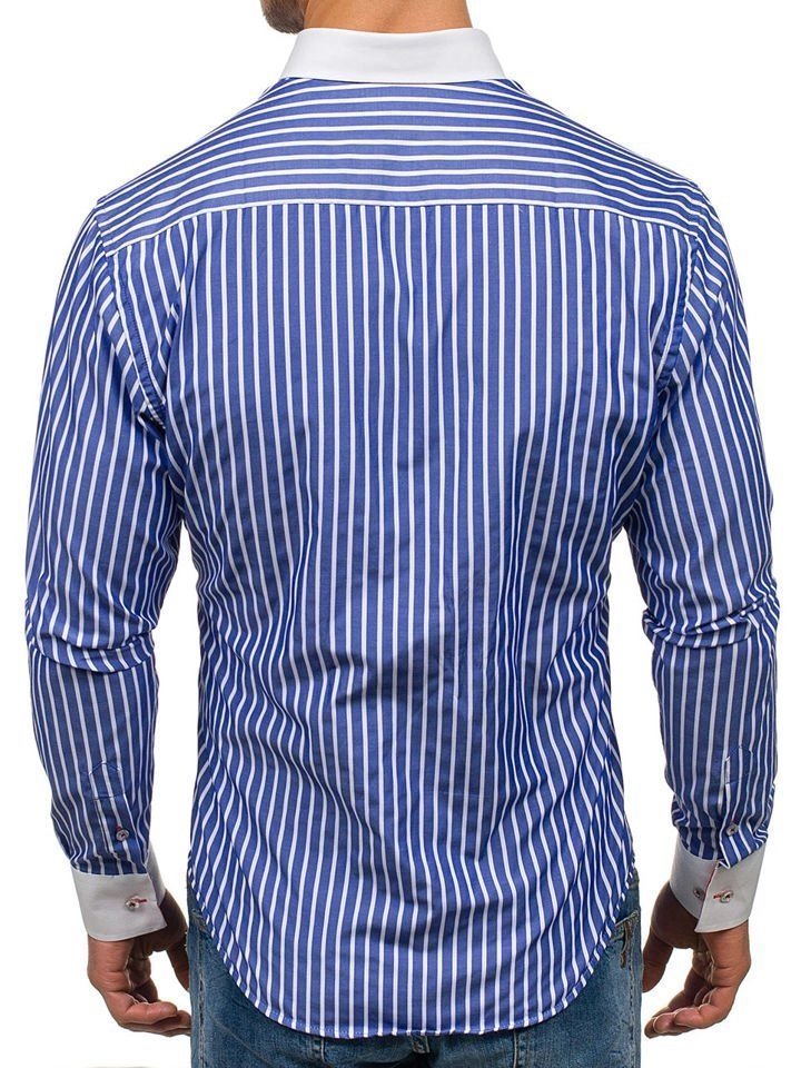Feedback från kunder Herr Randig Långärmad Skjorta Blå Bolf 1771