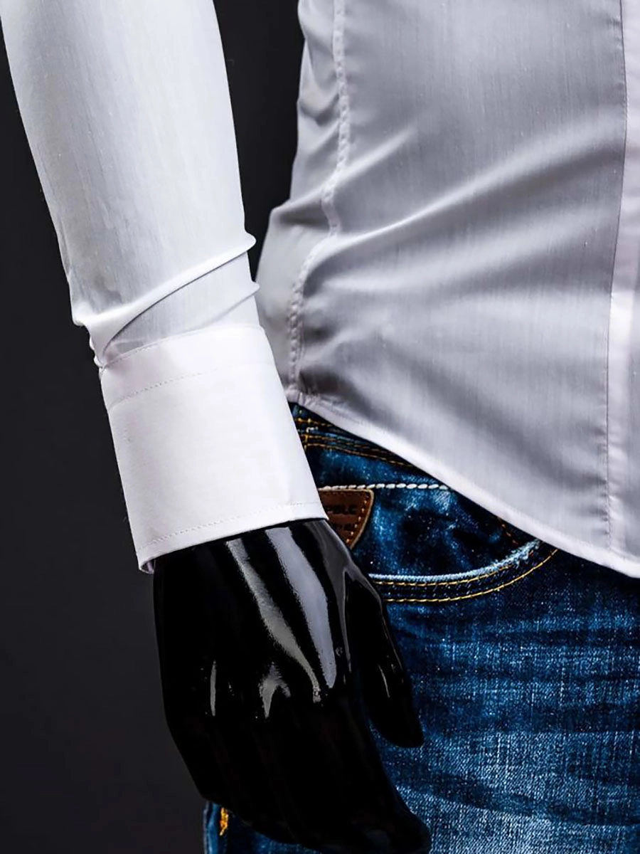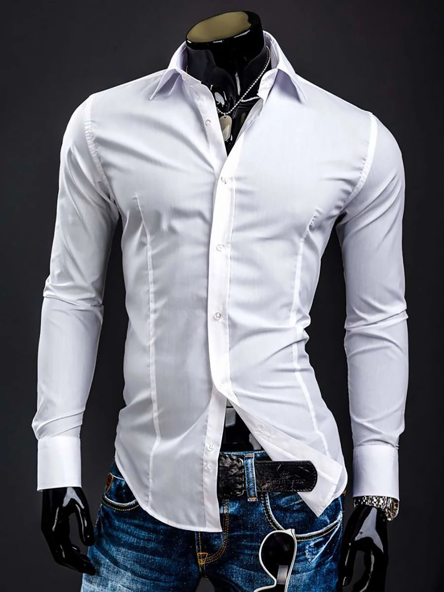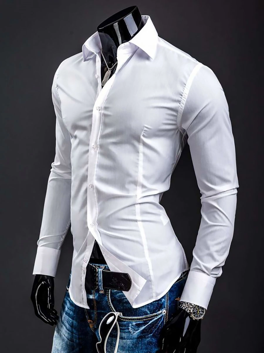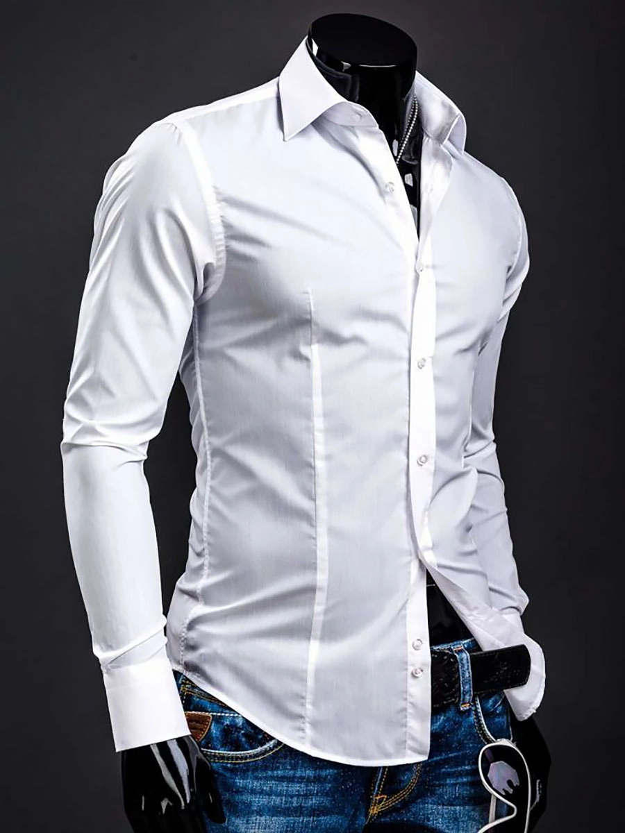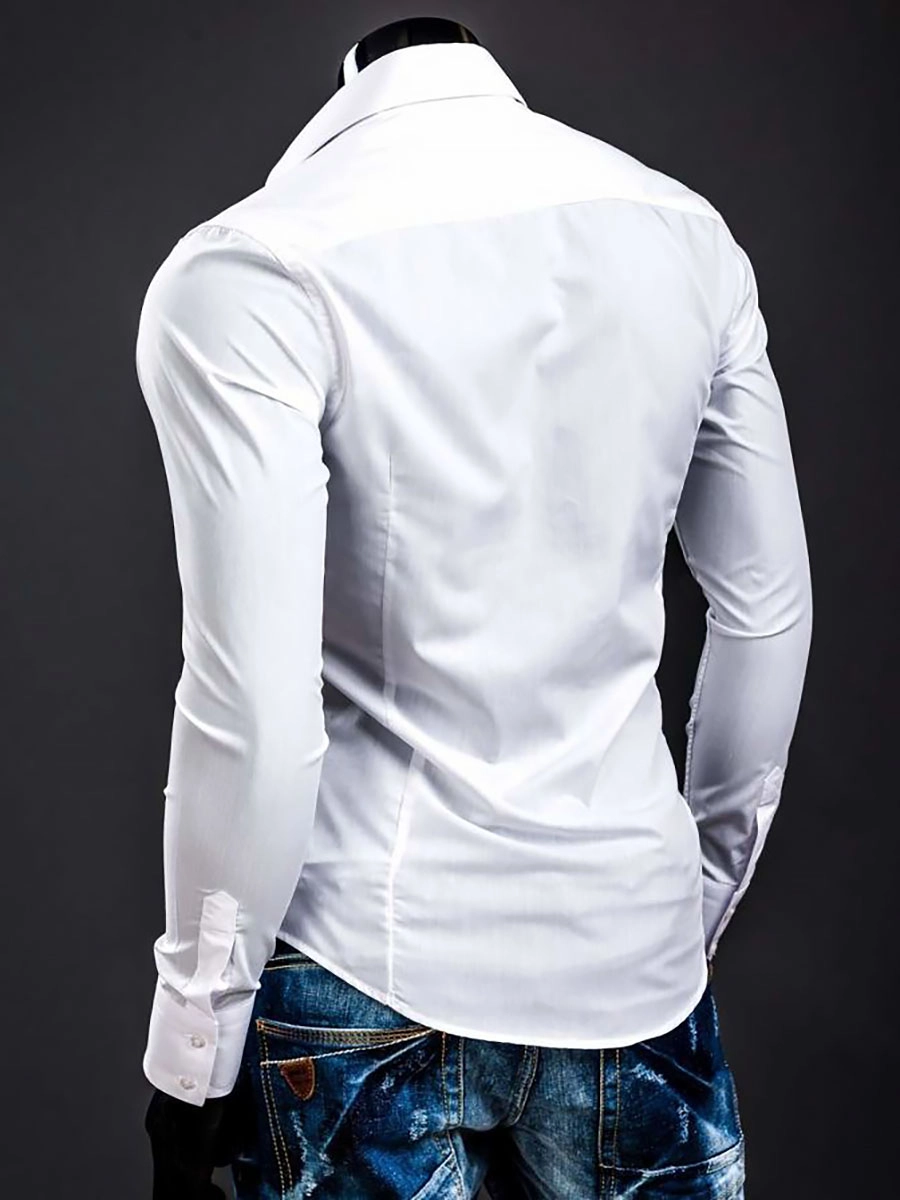 Elegant vit långärmad herrskjorta 1703A från Bolfs Kollektion. Den här modellen finns i flera olika färger. Enfärgade herrskjortor rekommenderas till de som gillar minimalism och klassisk elegans i modet. Den är bekväm och har bra passform. Defenitivt ett måste i den medvetna affärsmannens garderob. Designen är rak och passar till olika stilar. Skjortan är av slim fit-modell, har knappar och är praktiskt rundad nertill. Ärmarns avslutas med en bred, justerbar manschett som stängs med en knapp. Den har en klassisk krage med korta slag.
