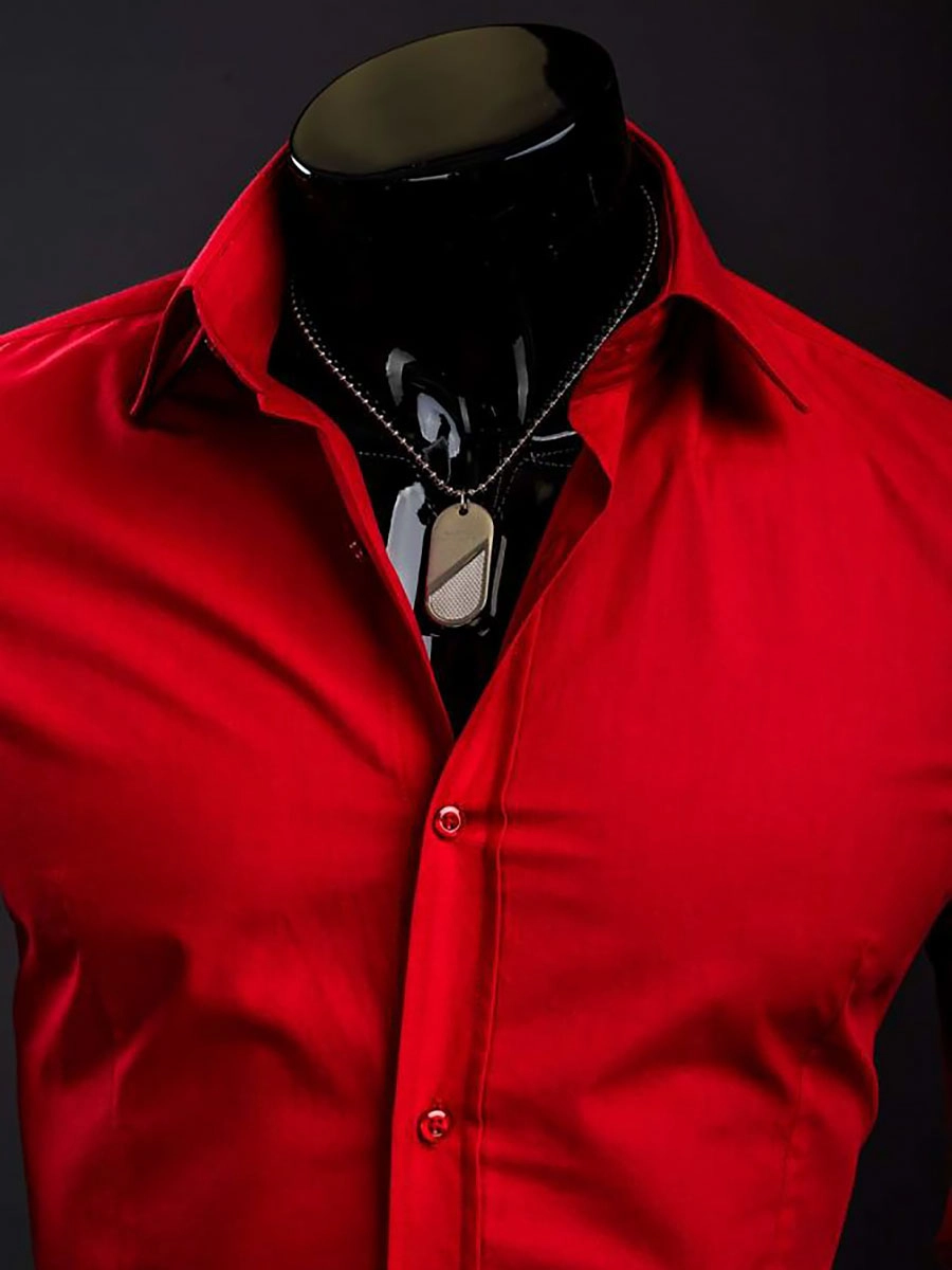 Elegant röd långärmad herrskjorta 1703A från Bolfs Kollektion. Den här modellen finns i flera olika färger. Enfärgade herrskjortor rekommenderas till de som gillar minimalism och klassisk elegans i modet. Den är bekväm och har bra passform. Defenitivt ett måste i den medvetna affärsmannens garderob. Designen är rak och passar till olika stilar. Skjortan är av slim fit-modell, har knappar och är praktiskt rundad nertill. Ärmarns avslutas med en bred, justerbar manschett som stängs med en knapp. Den har en klassisk krage med korta slag.