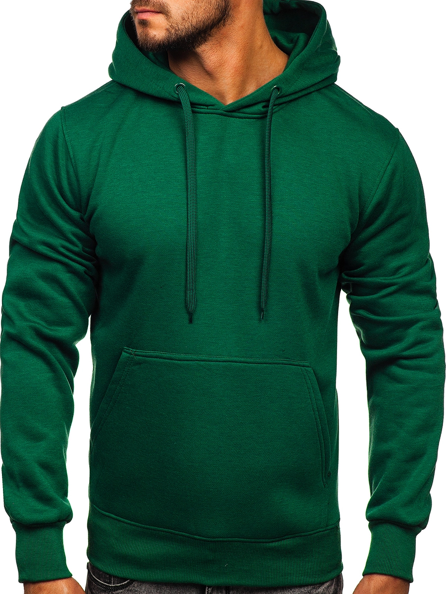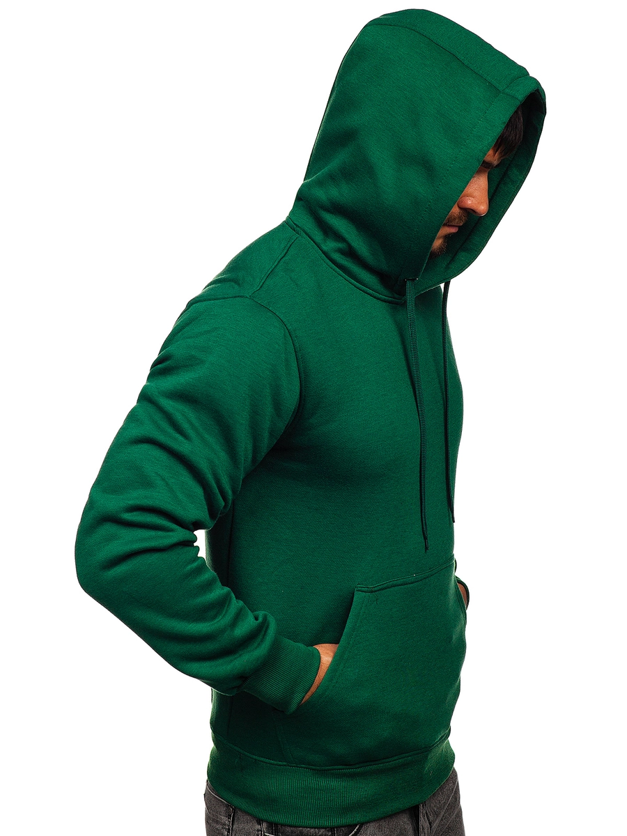 Fantastisk mörkgrön luvtröja för män 2009 från Bolf-kollektionen. Den har justerbar huva och en praktisk känguruficka framtill. Sportig look. Det finns en dragsko justerbar midja och botten. Den är tillverkad i ett mjukt skönt material i en enhetlig färg. Den här modellen kännetecknas av alla färger, den finns i mer än tjugo färgvarianter. Tack vare det är den lätt att matcha till många olika outfits. Passar bra hela året runt. Till många olika tillfällen. Shopping? Avslappning? Till och med för en spontan date passar den bra. Det här plagget passar varje dag, därför är den ett måste ha i varje mans garderob. Snygga färgglada färger. Den passar bra med jeans, cargobyxor eller joggers. Använd med ett par sweatpants eller en lättviktsjacka. Passar perfekt till träningspasset. Den här modellen väljs ofta av våra kunder. Kolla vad denna modell har fått för recensioner av influensers. Den lockar med bra utförande och ett bra pris jämfört med konkurrenterna. Denna sweatshirt har även sin motsvarighet bland dammodellerna, där den också slår rekord i populäritet.