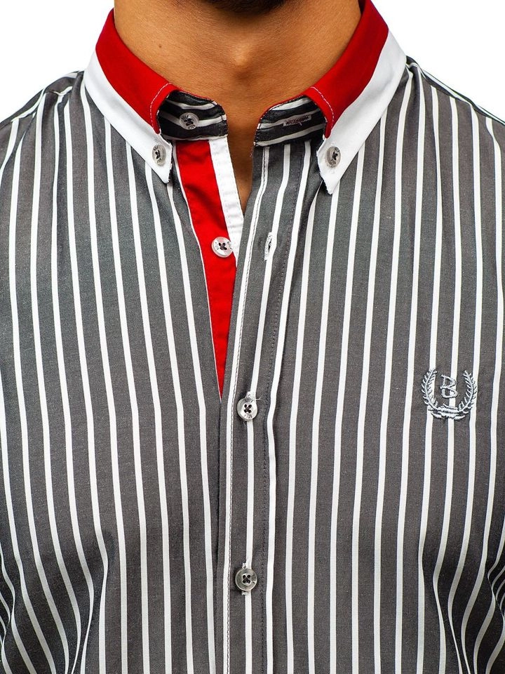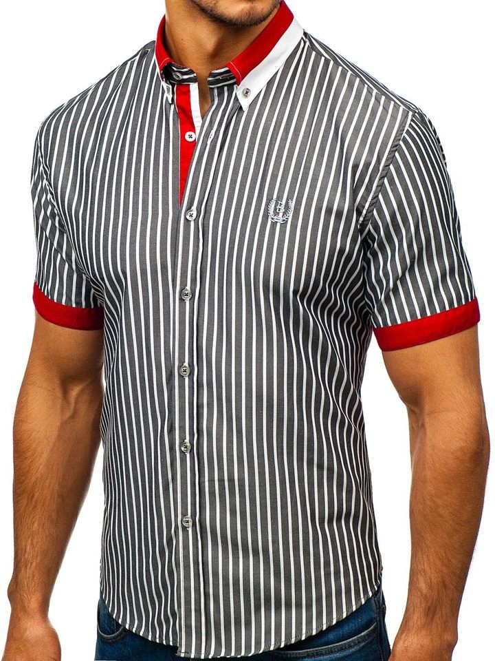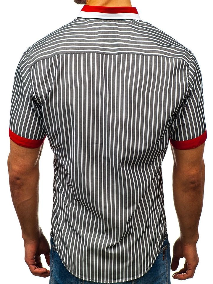 Vinrödrandig herrskjorta med kontrasterande krage från Bolfs kollektion. Skön passform och riktigt bekväm. Den här slim fit skjortan är ett odiskutabelt måste-ha denna säsong. Passar med shorts, chinos och slip-ins.