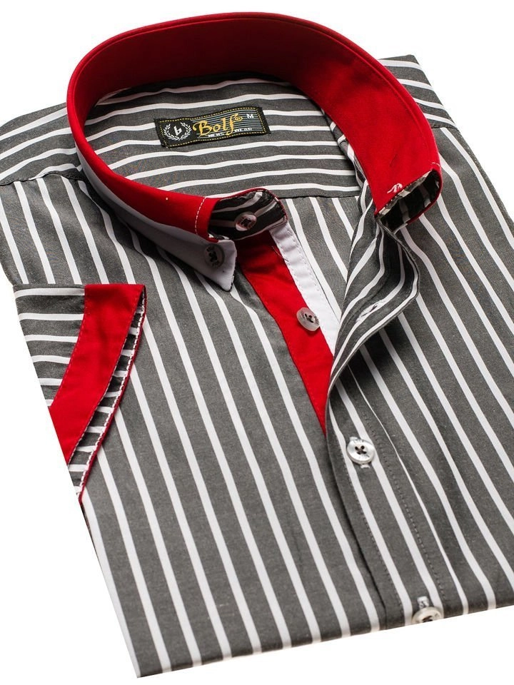 Feedback från kunder Herr Elegant Rutig Kortärmad Skjorta Grå Bolf 4501