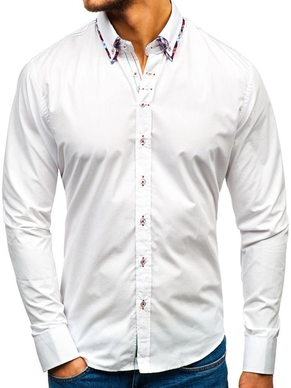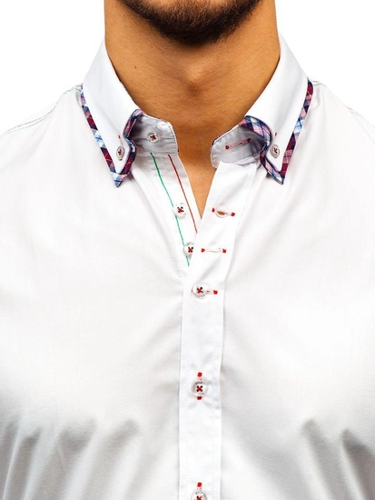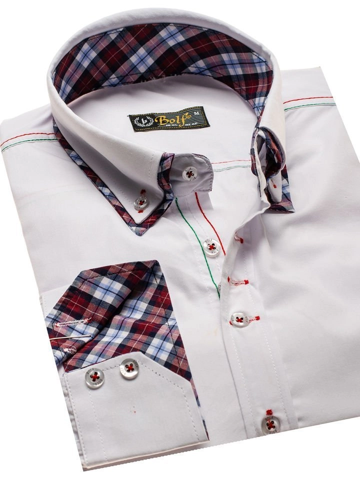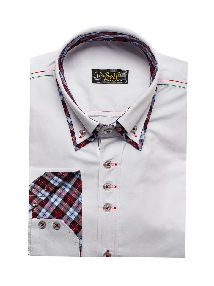 Snygg klassisk slim fit herrskjorta med dubbel button-down krage från Bolf kollektionen. Den finns i snygga färger, har rundad nederkant och dekorativa inslag på de dubbla kragarna. Den här modellen har bra passform och passar bra tillsammans med en kavaj, chinos eller en skinnjacka. Passar perfekt för vardags men även vid lite mer speciella tillfällen.