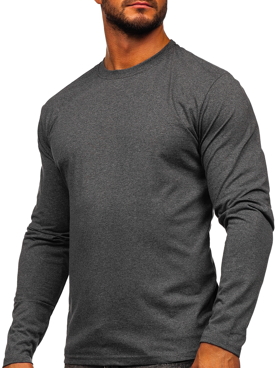 Feedback från kunder Herr Enfärgad Långärmad Top Antracitgrå Bolf 1209