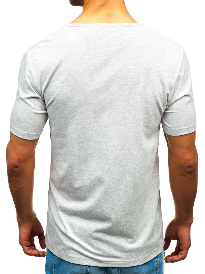 Basic grå T-shirt från Bolfs kollektion. Den har bra passform, understryker silhuetten och passar många olika stilar. Modellen kan användas till gymmet eller till vardags tillsammans med jeans och en sweatshirt.