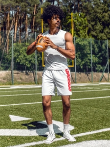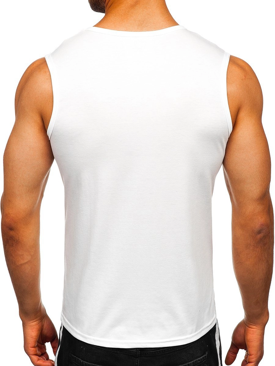 Klassisk vitt muskellinne 99001 från Bolf-kollektionen. Den presenterade modellen finns i många färger. Den är tillverkat av ett mjukt, andningsbart material av hög kvalitet. Perfekt passform och understryker snyggt silhuetten. Den har crew neckline med en elastisk trim. Det är basic och passar till varje stil. Det är ett måste i garderoben för varje man. Den passar bra med jeans, cargobyxor or joggers. Bär den tillsammans med Zip huvtröja eller en bomberjacka.