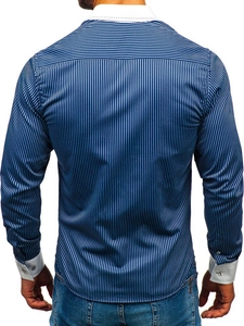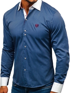 Feedback från kunder Herr Elegant Randig Långärmad Skjorta Marinblå Bolf 4784-A