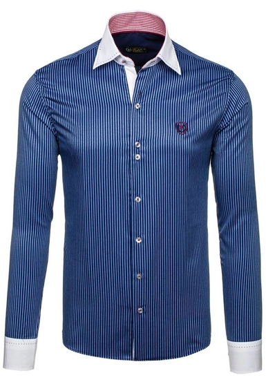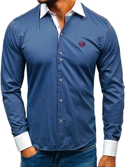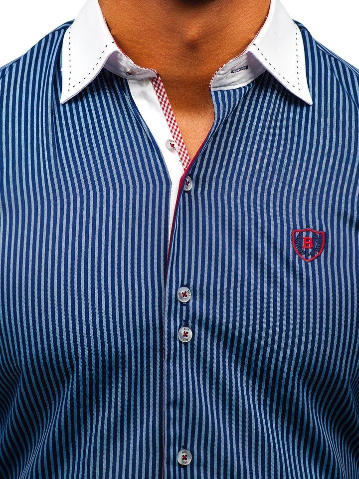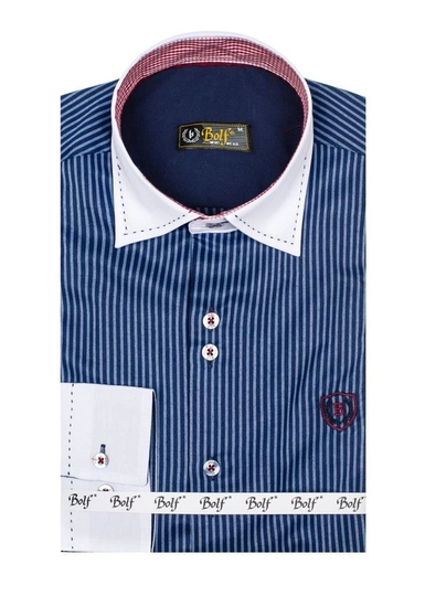 Fantastisk marinblårandig herrskjorta från Bolfs kollektion. Slim fit modell som ser riktigt bra ut och passar till många andra klädesplagg. Använd med ett par chinos i en stilfull outfit. Passar även bra att använda med jeans.
