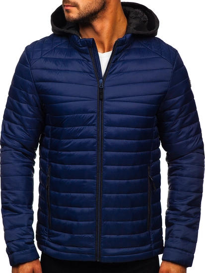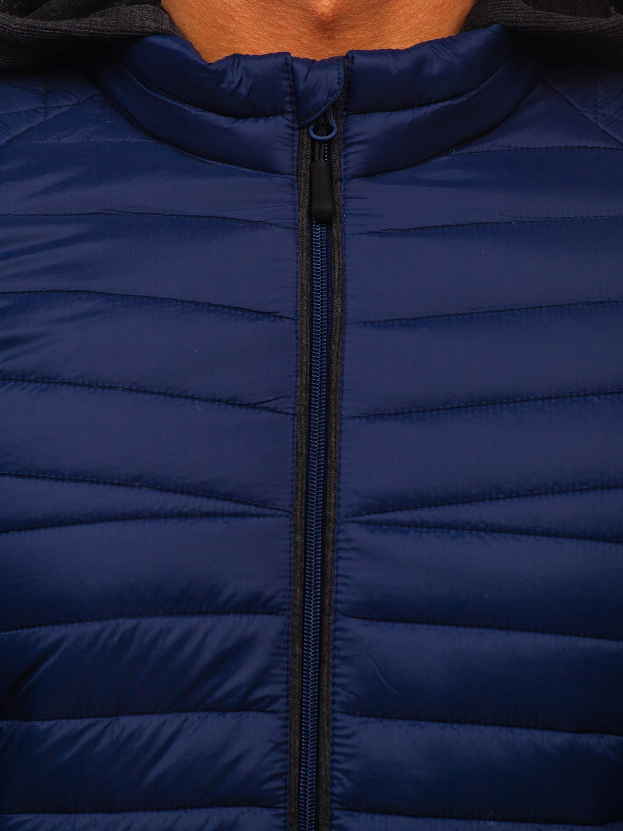 Snygg marinblå quiltad vårjacka från Bolf kollektionen. Den är lätt, har en justerbar huva och två praktiska fickor med dragkedja. Använd gärna tillsammans med jeans eller ett par baggy byxor och sneakers.