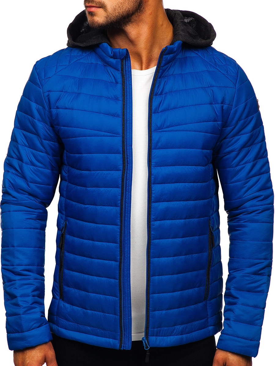Snygg blå quiltad vårjacka från Bolf kollektionen. Den är lätt, har en justerbar huva och två praktiska fickor med dragkedja. Använd gärna tillsammans med jeans eller ett par baggy byxor och sneakers.