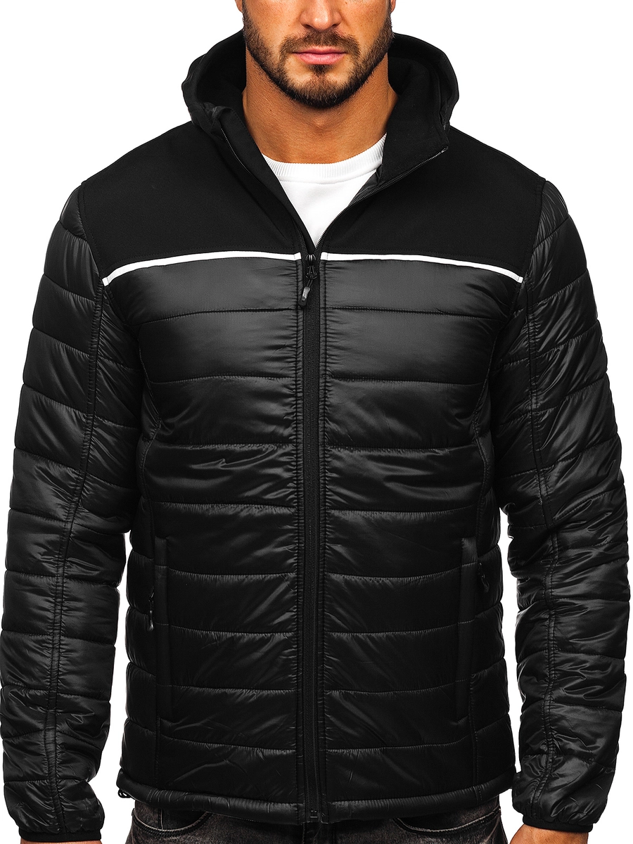 Snygg svart luvtröja för män från Bolf-kollektionen. Den är quiltad och har två praktiska fickor med dragkedja. Den här modellen passar perfekt under kyliga dagar. Bär den avslappnad med jeans eller joggingbyxor.
