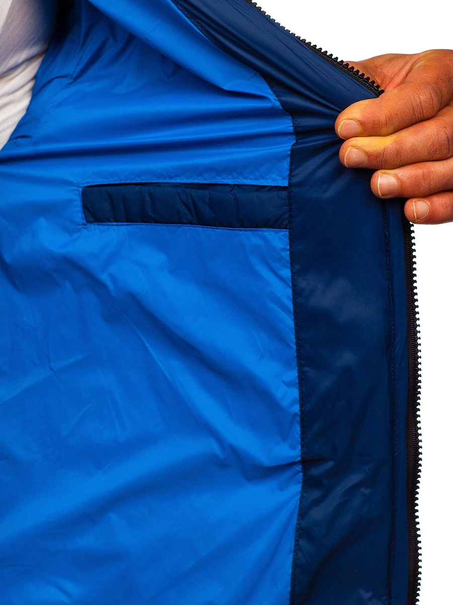 Praktisk marinblå quiltad lättviktsjacka från Bolfs kollektion. Bekväm och skön, skyddar bra mot blåst och kyla, har en justerbar huva och två fickor med dragkedja. Passar bra ihop till flertalet olika klädstilar. Använd gärna tillsammans med jeans, en sweatshirt eller T-shirt.