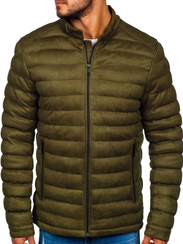 Trendig kakifärgad herr övergångsjacka från Bolf kollektionen. Quilted och två praktiska fickor med dragkedja. Bra skydd mot kyla och blåst.