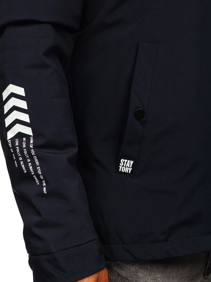 Lättvikts marinblå övergångsjacka från Bolf-kollektionen. Det är modern, praktiskt och har tryck på ärmarna. Passar bra under sportaktiviteter eller bara till vardags. Passar bra ihop med ett par sweatpants.