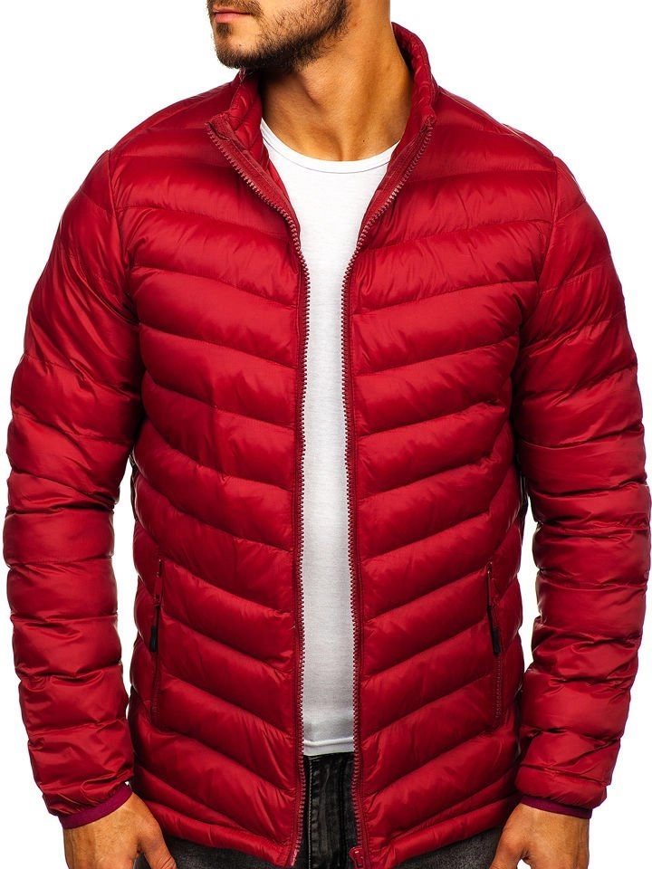 Cool vinröd sportjacka från Bolf kollektionen. Quilted, två fickor med dragkedja. Passar perfekt till vardags eller sportigare aktiviteter. passar bra tillsammans med ett par schyssta jeans.