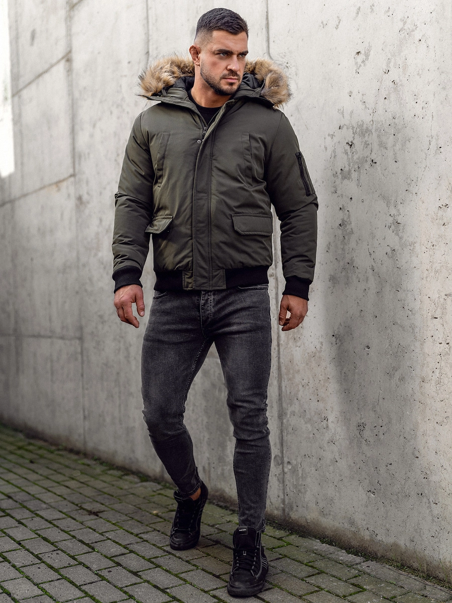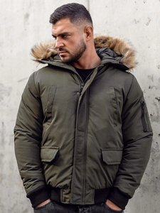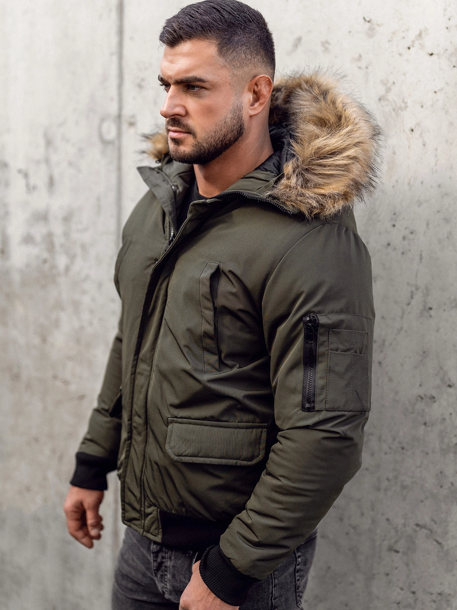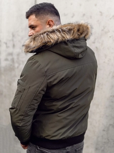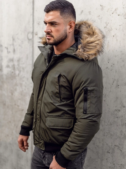 Perfekt khaki vinterjacka med många fickor och en dekorativ lurvig huva från Bolf-kollektionen. Den är mycket bekväm och har fickor. Passar bra till vardags. Använd med en sweatshirt och jeans eller ett par joggers.