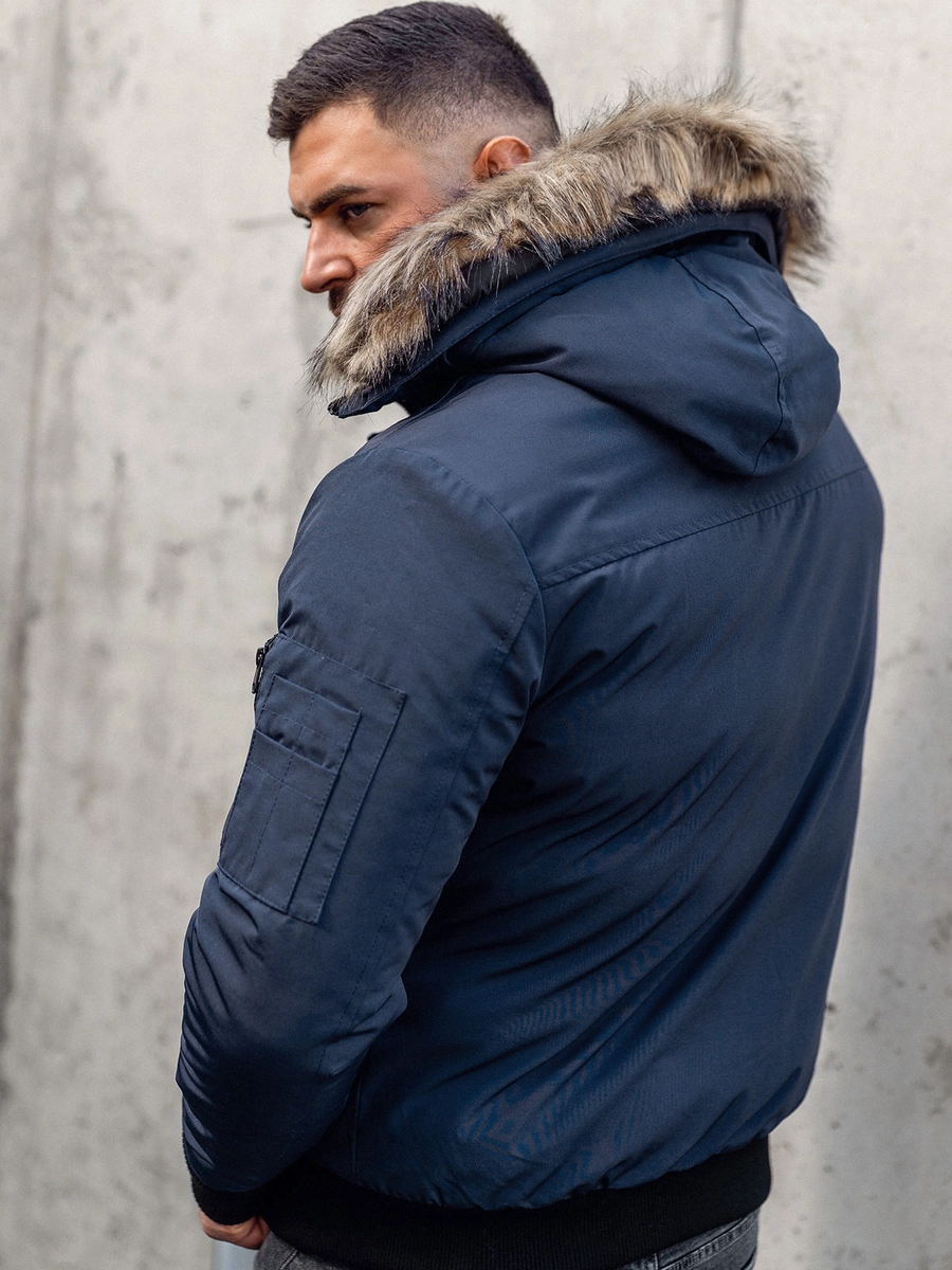Marinblå vinterjacka med många fickor och dekorativ pälshuva från Bolf kollektionen. Bekväm, snäppfickor. Passar perfekt till vardagen. Bär den tillsammans med en sweatshirt och jeans eller joggers.