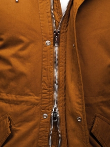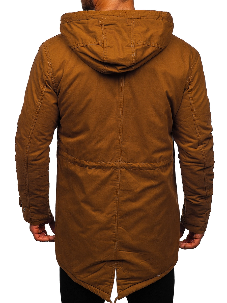 Bästsäljande kamelfärgad herr vinterparkas EX838 från Bolfs kollektion. Gör ett läckert intryck. Den är väldigt snygg och praktisk. Fäste med dragkedja och snäpp. Justerbar isolerad huva fäst vid kragen. Två snäppfickor Ribbade ärmar från insidan med snäppreglering. Passar till flertalet stilar och andra klädesplagg. Passar bra både till arbete, shopping eller till andra vardagliga tillfällen. Den är väldigt snygg och iögonfallande. Använd med ett par jeans och en sweatshirt eller chinos, en skjorta och en tröja. Denna snygga modell lever upp till alla gentlemäns förväntningar. Den kan användas under kyliga dagar istället för en lättviktsjacka. Lite längre modell. Den värmer bra vid låga temperaturer. Passar perfekt till vardags eller en sportigare stil. Den här parkasen har en bekväm passform och är tillverkad av högkvalitativt material.