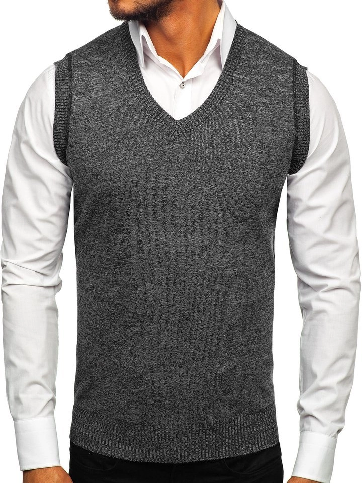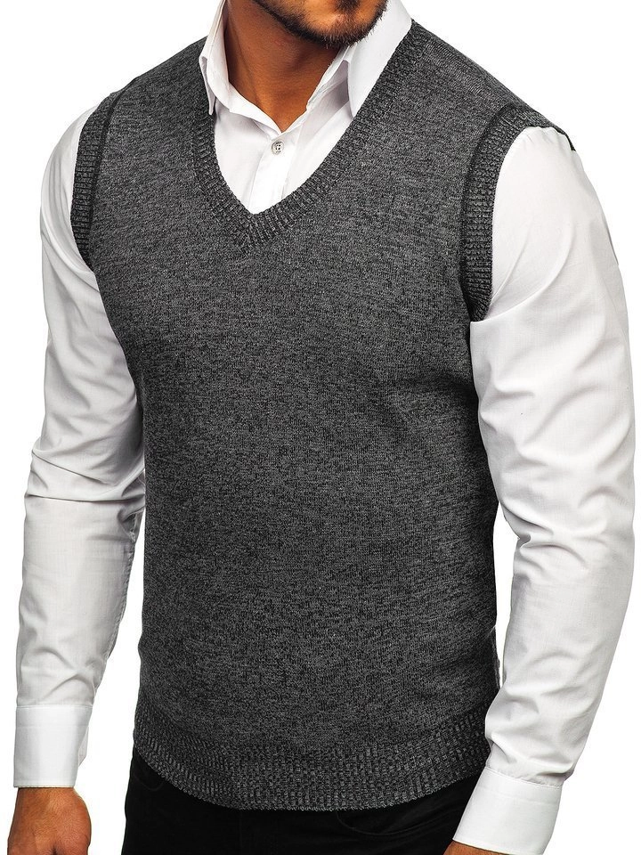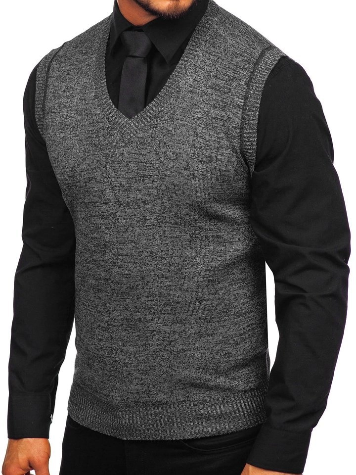 Snygg svart herr ärmlös tröja från Bolfs kollektion. Den är väldigt snygg och extremt bekväm. Den här modellen passar bra tillsammans med en klassisk tröja. Använd den gärna under en blazer de kalla dagarna.