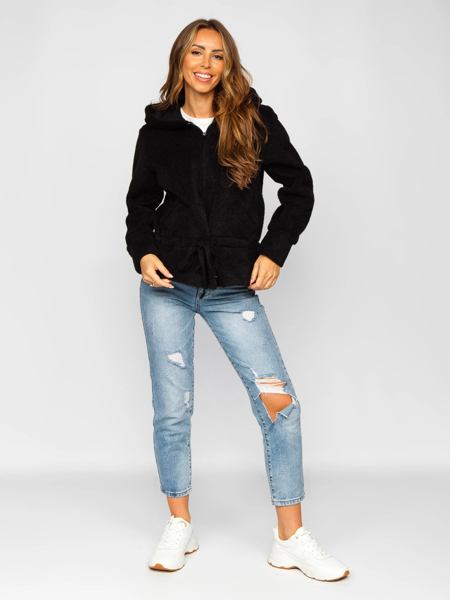 Feedback från kunder Dam Kort Kappa Jacka med huva Svart Bolf 9320