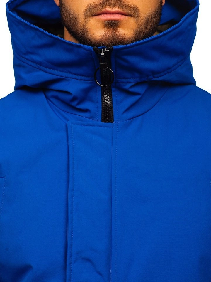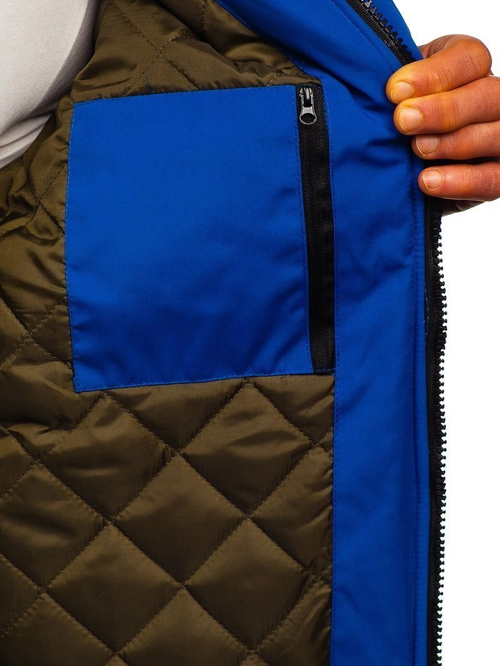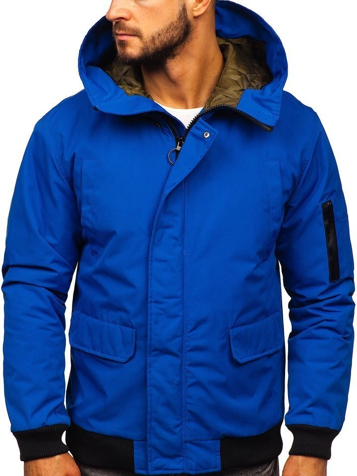 Iögonfallande blå herrvinterjacka 2019005 från Bolfs kollektion. En jacka i en klassisk färg adderar elegans till en vardaglig styling. Den stängs med en dragkedja och tryckknappar, har en ståkrage och en huva. Den har praktiska fickor: fyra utvändiga med tryckknappar, en liten på vänster ärm och en invändig med dragkedja. En elastisk mudd nertill och vid ärmsluten gör att jackan ser snygg och klassisk ut. Den är tillverkad av 100% polyester. Tack vare dess mångsidighet kan den lätt matchas med många olika stilar. Passar perfekt till träning, långa höst-/vinterpromenader eller vandingar. Passar bra ihop med jeans eller joggers och en långärmad top.