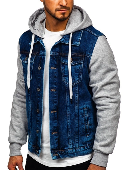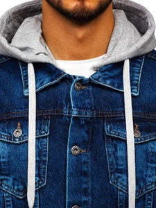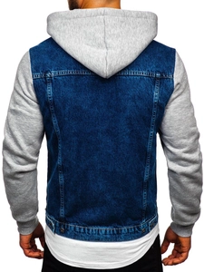 Användbar marinblå herr jeansjacka med knappar och huva 211902 från Bolfs kollektion. Den har två bröstfickor med lock vilka stängs med knapp. De passar perfekt för telefon eller andra små saker. De två lägre placerade fickorna har ingen stängning. Ärmarna har elastiska muddar vilket gör dem lätta att vika upp. Huvan är gjord av tyg. En stor fördel med jackan är att huvan är avtagbar vilket kan göra den lite mer elegant till mer formella sammanhang. Huvan kan justeras med dragsko vilket gör den praktisk blåsiga och regniga dagar. Huvan och ärmarna är gjorda av tyg. Den grå färgen på huvan och ärmarna kontrasterar väl med resten av jackan. Den är designad för de som gillaar en vardaglig stil. Passar till: möte med vänner, promenader eller en utekväll i stan. Mångsidigheten i denna jacka gör att du känner dig både bekväm och snygg i den. Knapparna adderar stil till den. Nertill finns också snygg stängning, även de med knappar. Längs med jackan och på axlarna finns smakfull sömnad vilket ger den karaktär. Jackan passar bra både till lite mer diskreta och till mer utmärkande outfits. Det universella snittet gör att den passar bra för höstkvällar. Passar även bra under kallar vår och sommarkvällar. Den är ett måste i varje mans garderob, den gör dig både stilfull och elegant. Tack vare de olika färgera kan den anpassas till alla olika tillfällen. Den kommer i dämpade färger så den kan lätt matchas med andra kläder. Passar bra med enlångärmad top, joggers, jeans eller en tröja. Fungerar även bra med en huvtröja eller en skjorta. Den är tillverkad av 100 % bomull vilket gör den varm och skön.