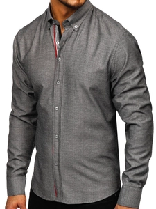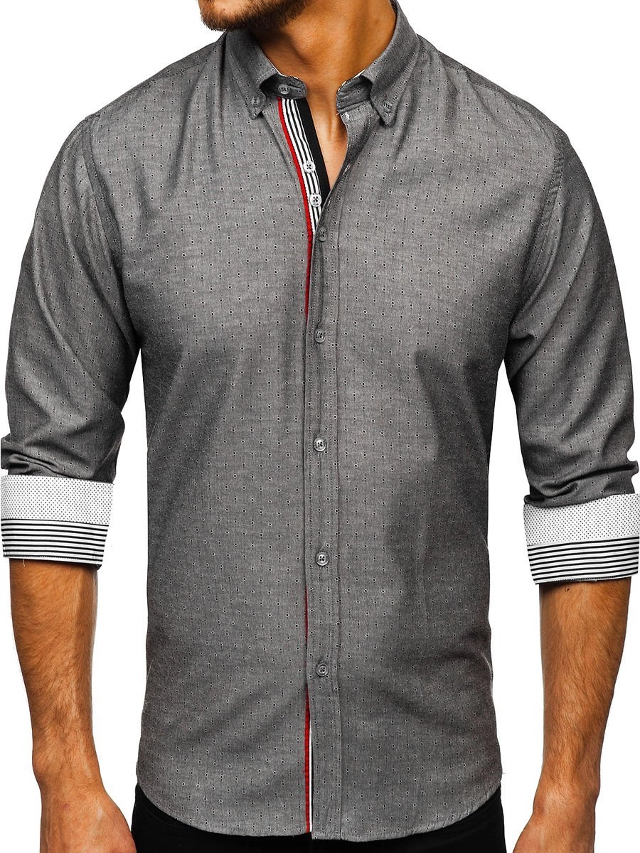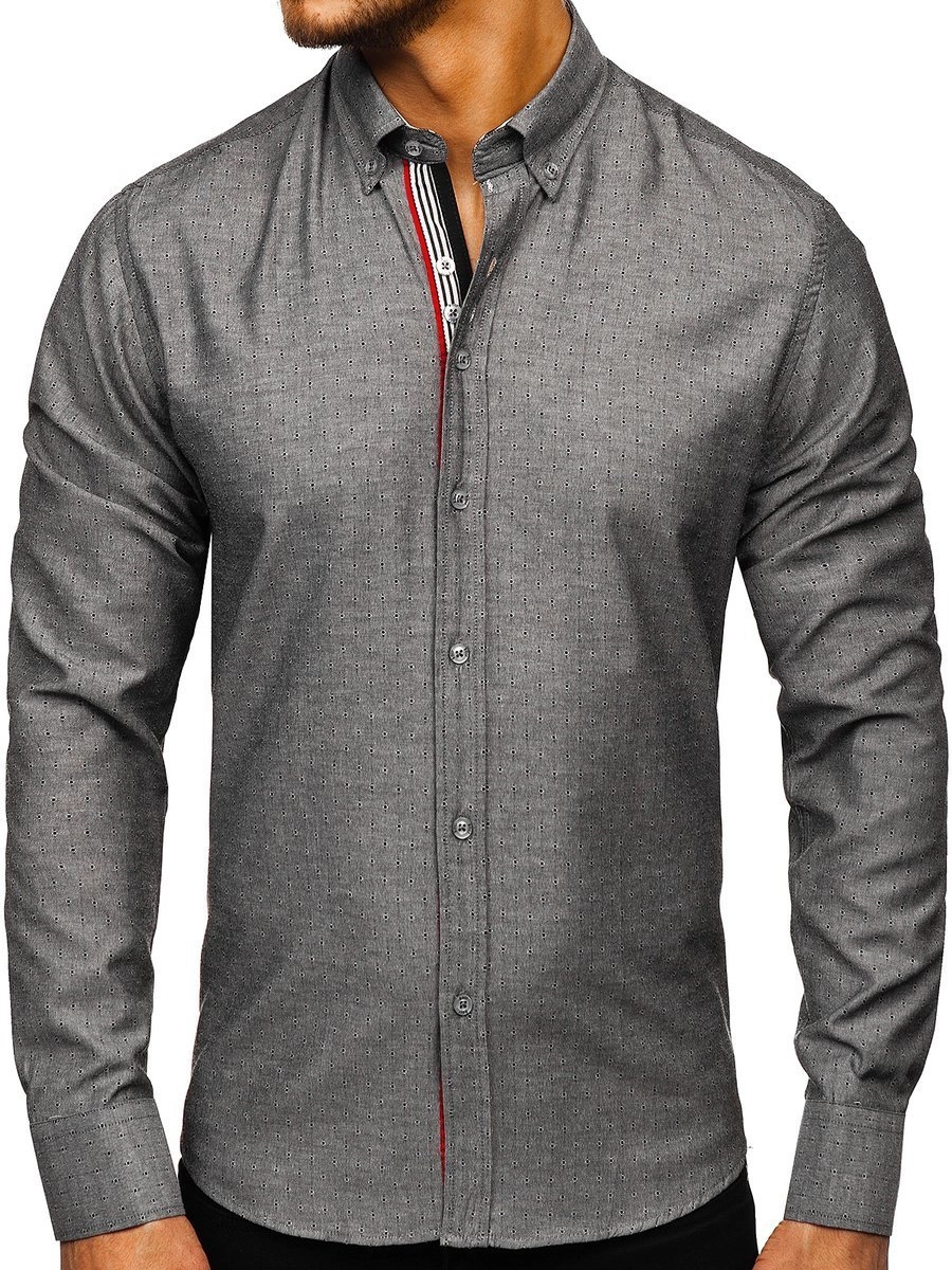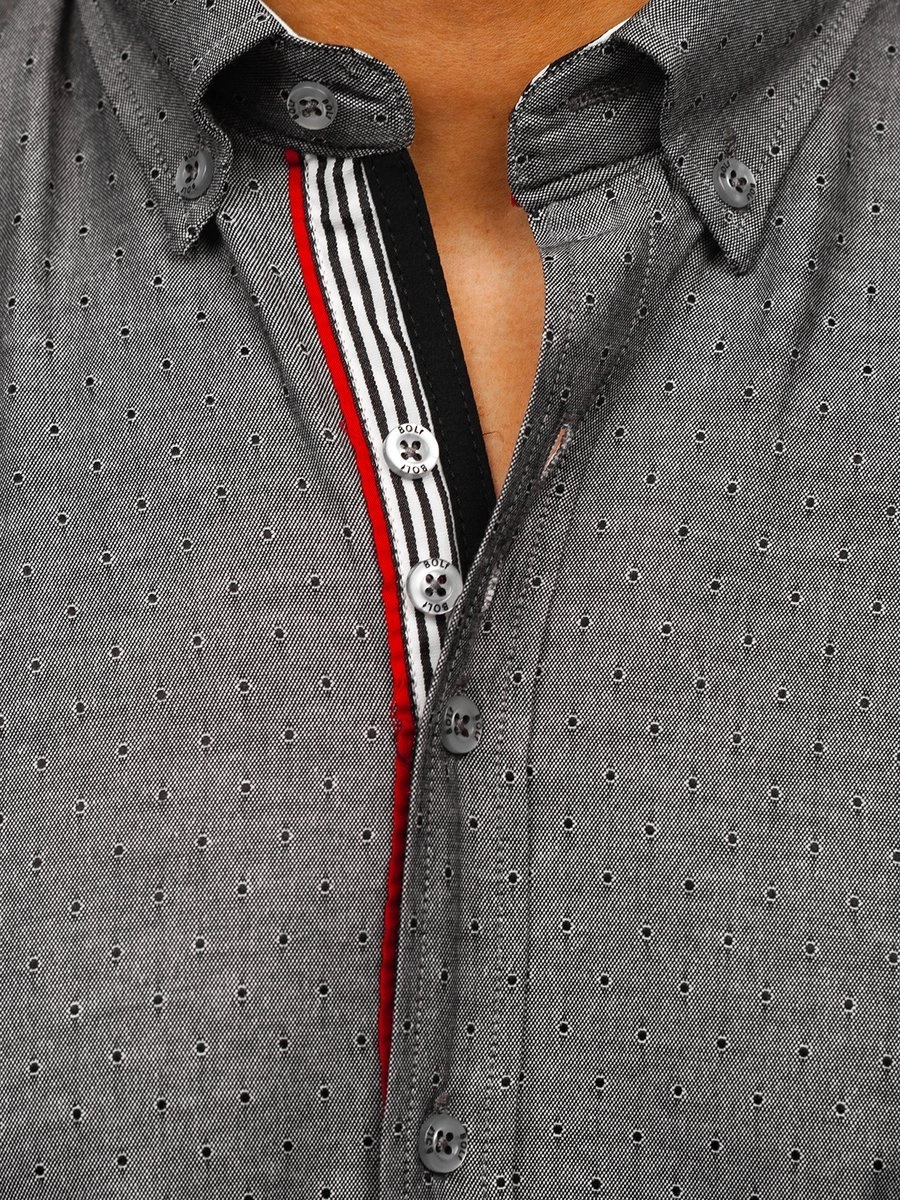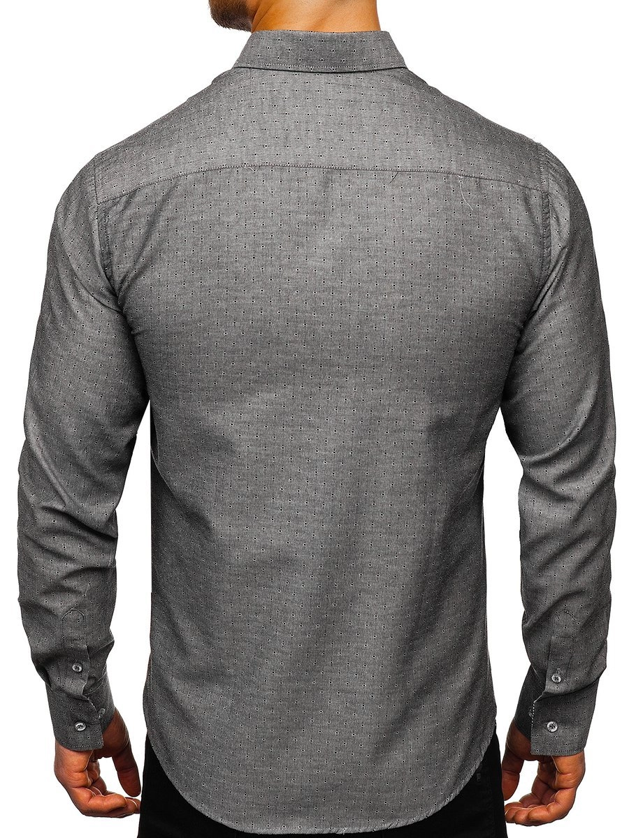 Grafitgrå herrskjorta med ett litet mönster från Bolf-kollektionen. Denna skjorta passar till många olika stilar. Slim-Fit, smal passform och har en knapp nedåt krage. Knappfästning. Passar bra till vardags.