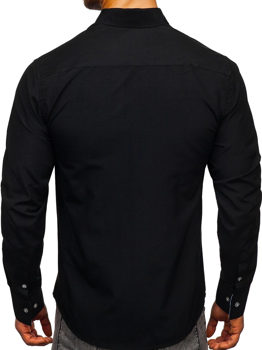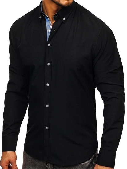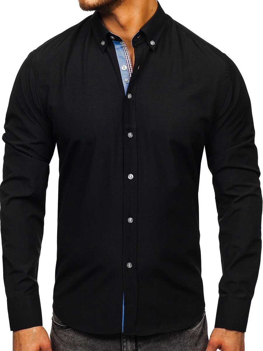Klassisk svart herrskjorta från Bolf kollektionen med en knapp ned-krage. Bekväm, snygg och trendig. En skjorta med passformen slim fit. Passar perfekt tillsammans med ett par jeans eller chinos.