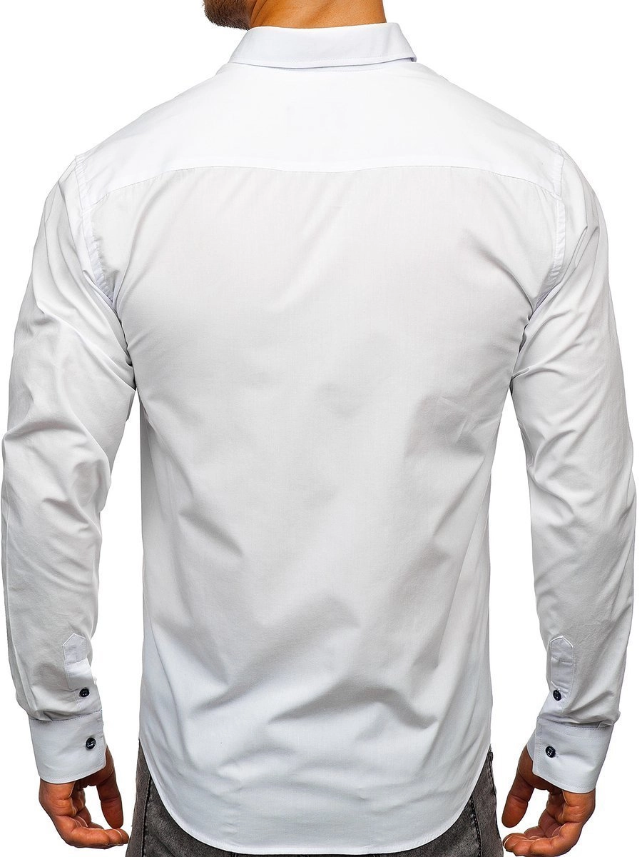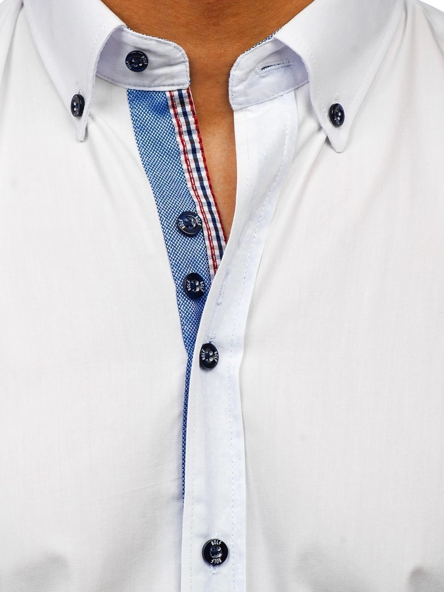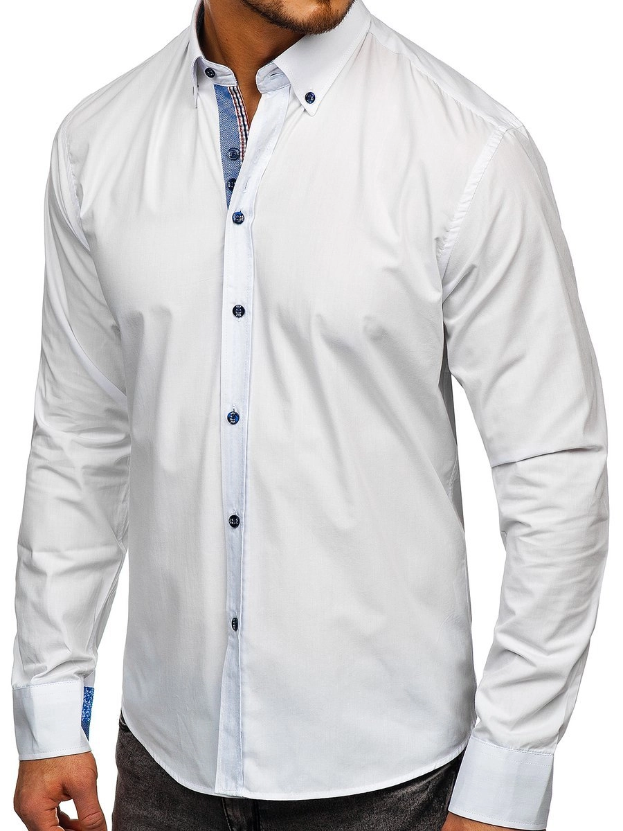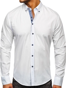 Klassisk vit herrskjorta från Bolf kollektionen med en knapp ned-krage. Bekväm, snygg och trendig. En skjorta med passformen slim fit. Passar perfekt tillsammans med ett par jeans eller chinos.