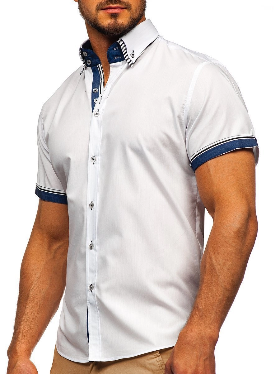 Vit kortärmad skjorta från Bolf kollektionen. Perfekt för sommaren under varma dagar. Den presenterade modellen är av slim fit. Den har en krökt botten och ser riktigt snygg ut. Bär den tillsammans med byxor eller shorts.