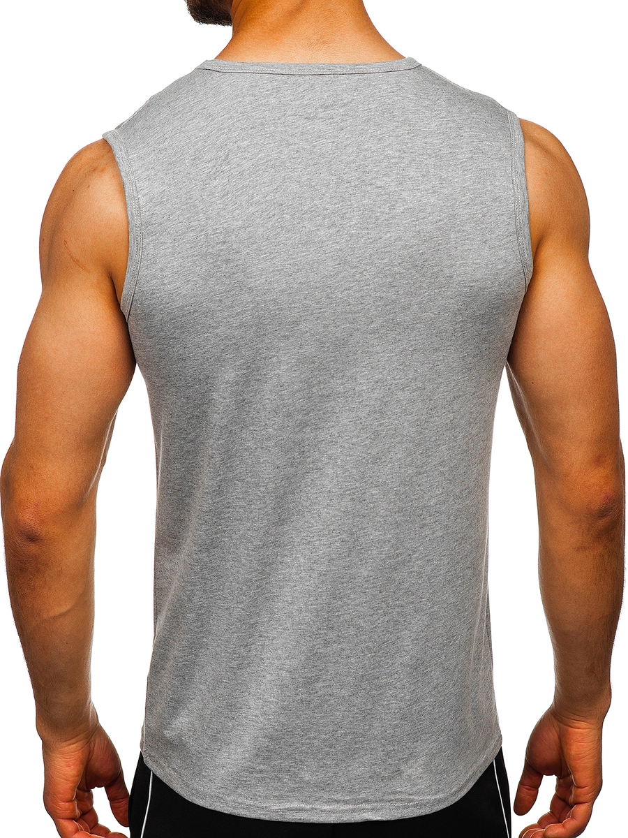 Klassisk grått muskellinne 99001 från Bolf-kollektionen. Den presenterade modellen finns i många färger. Den är tillverkat av ett mjukt, andningsbart material av hög kvalitet. Den är perfekt monterad och understryker silhuetten. Den har crew neckline med en elastisk trim. Det är basic och passar till varje stil. Det är ett måste i garderoben för varje man. Den passar bra med jeans, cargobyxor or joggers. Bär den tillsammans med Zip huvtröja eller en bomberjacka.